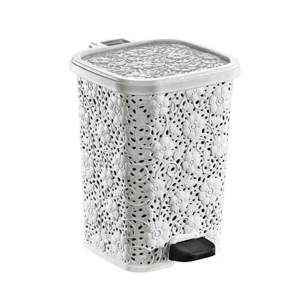 Мусорное ведро с педалью Dunya Plastik сочетает в себе практичность и стильный дизайн. Рельефный узор с цветочными мотивами превращает обычную корзину в элемент декора, а педальный механизм обеспечивает гигиеничное использование без контакта с крышкой.