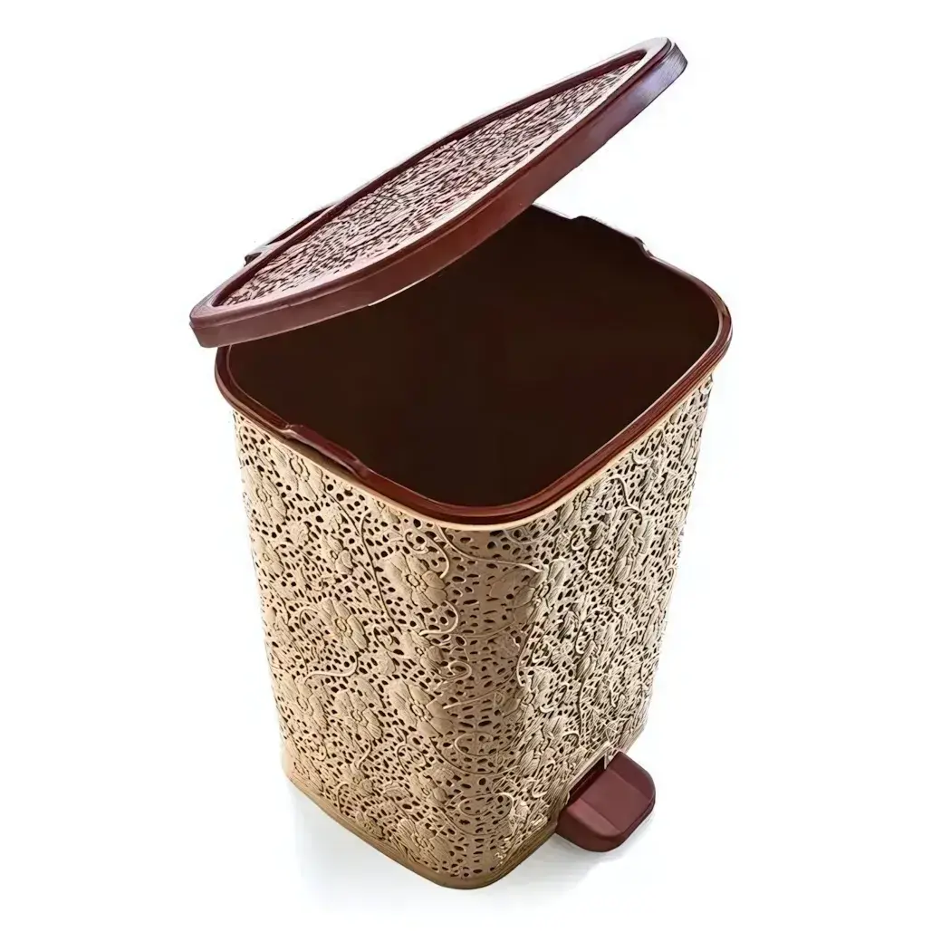 Ведро мусорное с педалью 12л, бежевое, с ажурным узором, для кухни