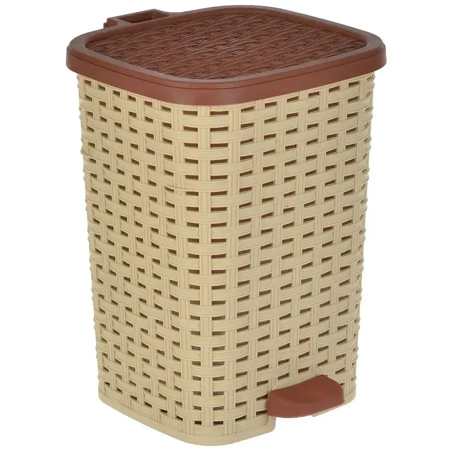 Ведро мусорное с педалью 12л, плетеный пластик, цвет в ассортименте (беж/коричневый/крем)