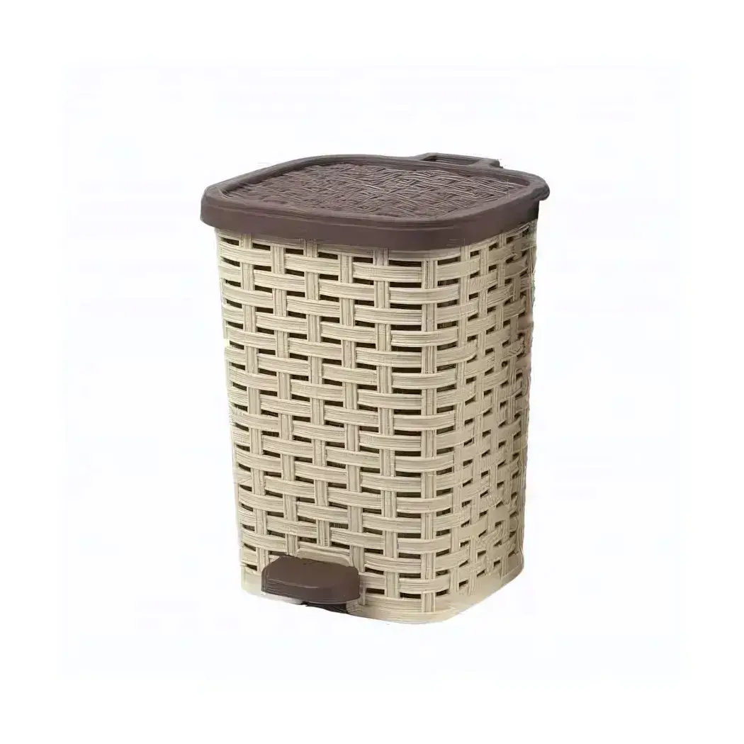 Ведро мусорное с педалью 6 л, плетёный дизайн, пластик, цвет бежевый/коричневый