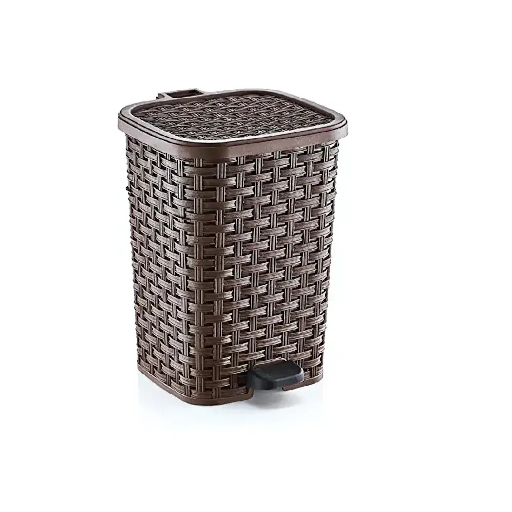 Ведро мусорное с педалью 6л, пластик, плетёный дизайн, коричневое, удобное открывание