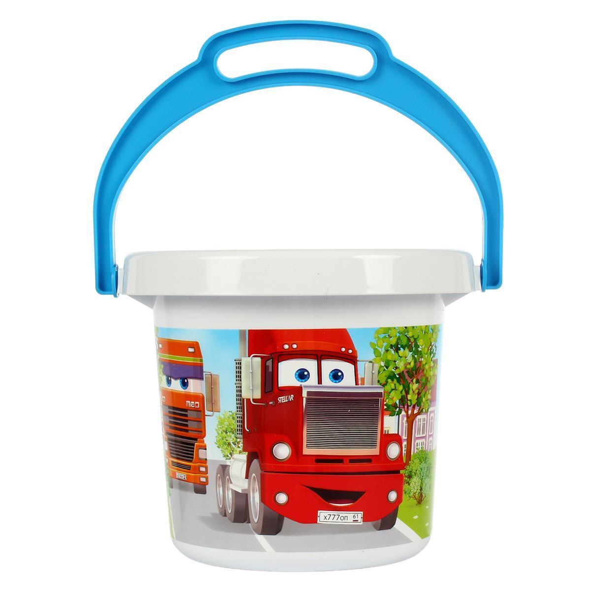 Ведро детское "Палитра" 1,4л с ручкой, рисунок автомобилей, полипропилен (Стеллар)