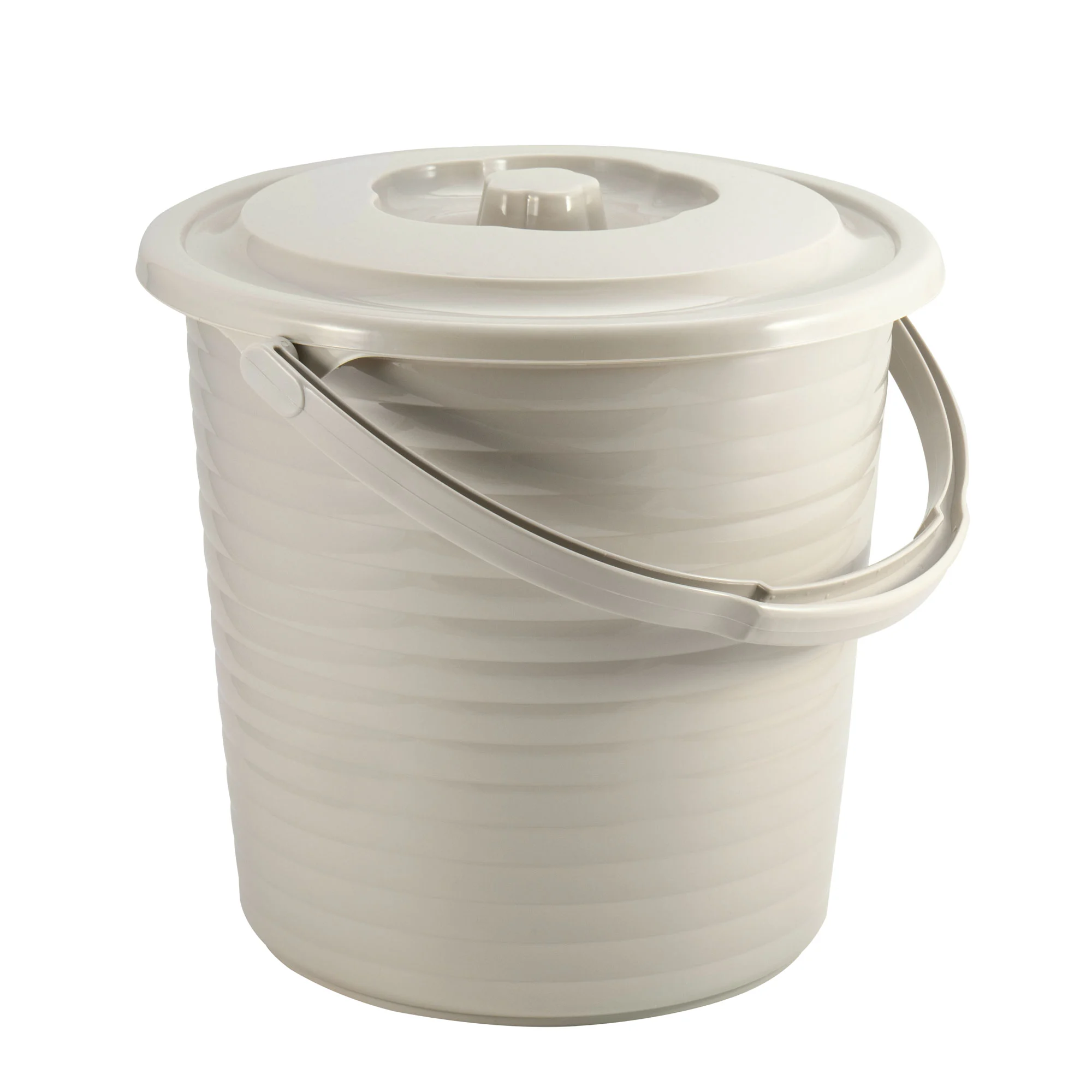 Ведро имеет классическую цилиндрическую форму с плавным расширением кверху, что облегчает его мытье и извлечение содержимого. Объём в 15 литров — оптимален для большинства хозяйственных задач. Светлый серо-бежевый цвет выглядит нейтрально и аккуратно. Изделие поставляется одним комплектом: ведро и крышка.