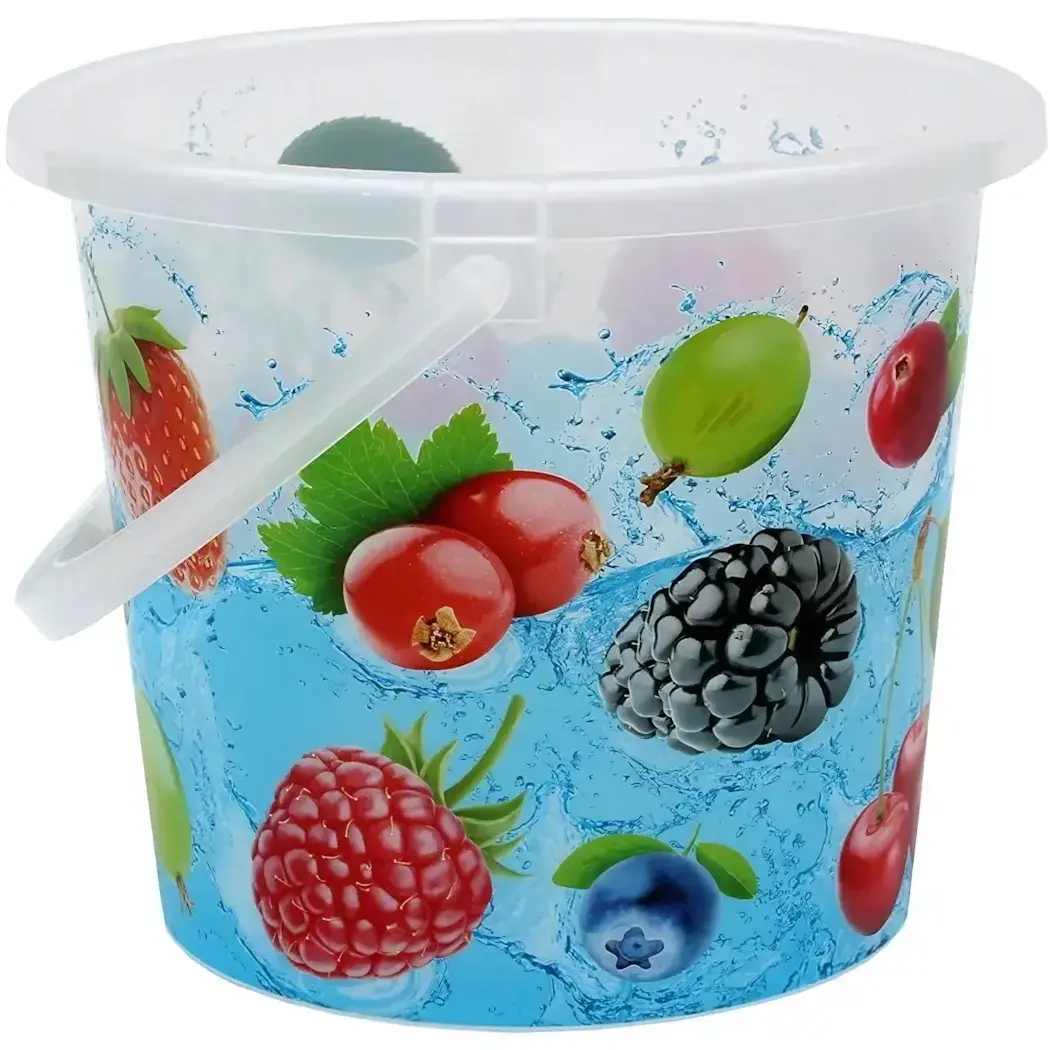 Пластиковое ведро 'Ягодный микс' объемом 5 литров станет вашим надежным помощником в хозяйстве. Его яркий дизайн с изображением сочных ягод поднимет настроение при любой работе.