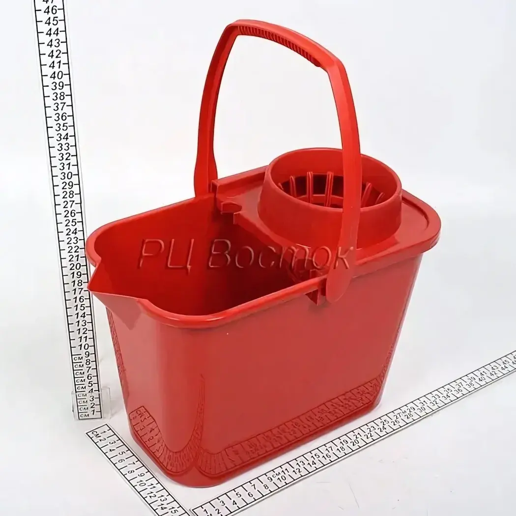 Объём 10 литров оптимален для работы со стандартными швабрами. Красный цвет корпуса сохраняет насыщенность даже при длительном использовании. Прямоугольная форма с компактными габаритами позволяет хранить ведро в узких пространствах.