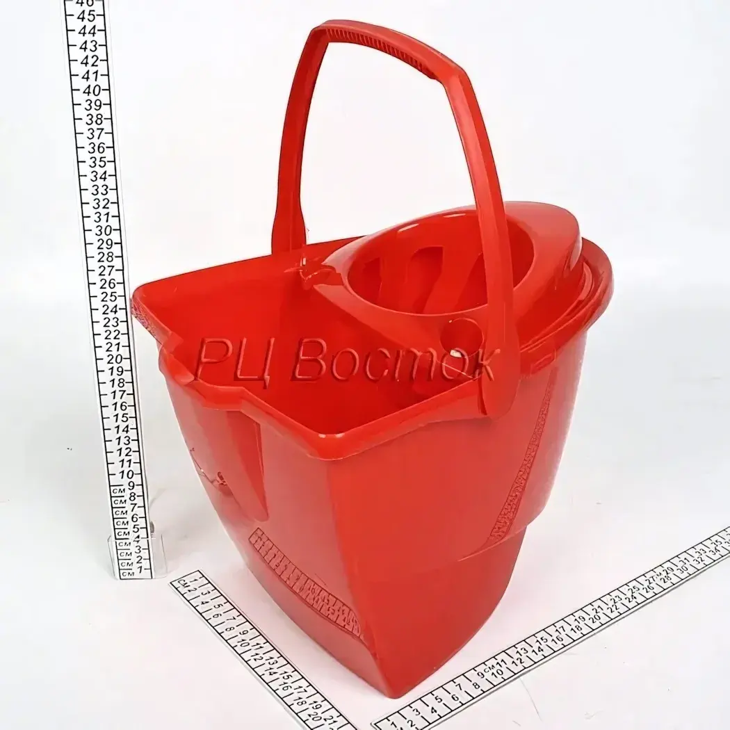 Ведро пластиковое с отжимом 12л, красное, практичное для уборки