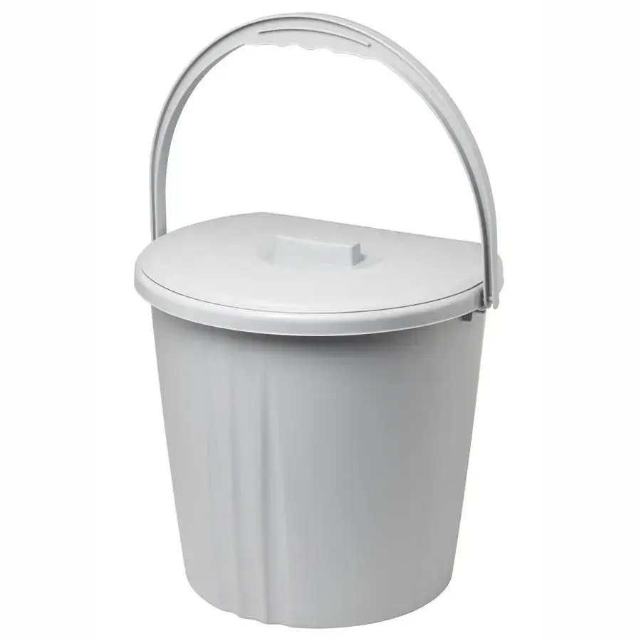Ведро пристенное пластиковое 11л с крышкой, удобное крепление, цвет в ассортименте