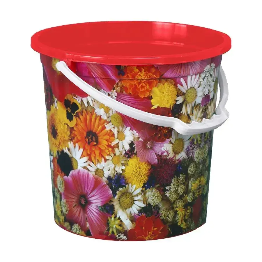 Ведро пластиковое 12л с цветочным принтом, комплект 10 шт, красный/белый