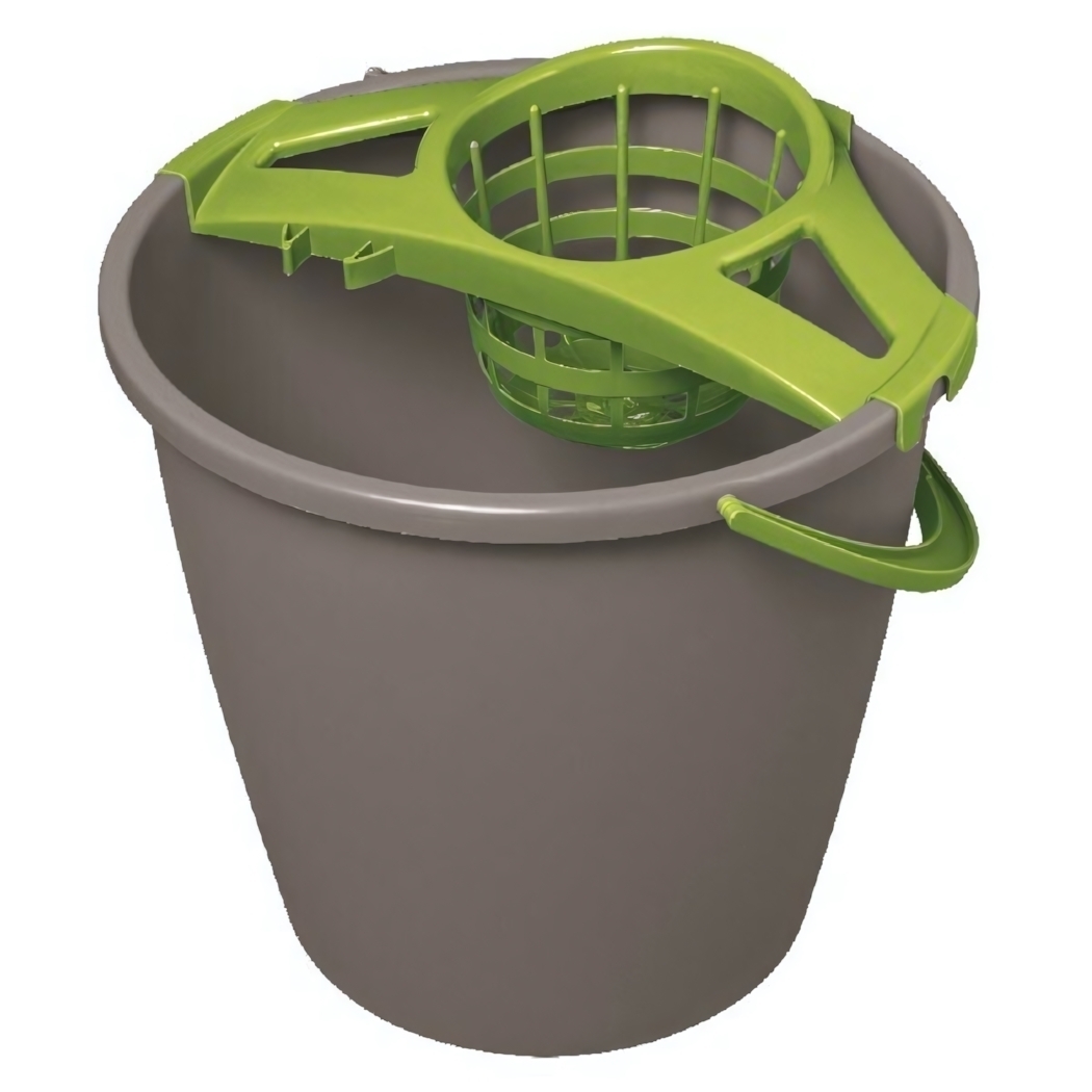 Ведро с отжимом 10л, пластиковое, серо-зелёное, фиксатор швабры YORK для удобной уборки