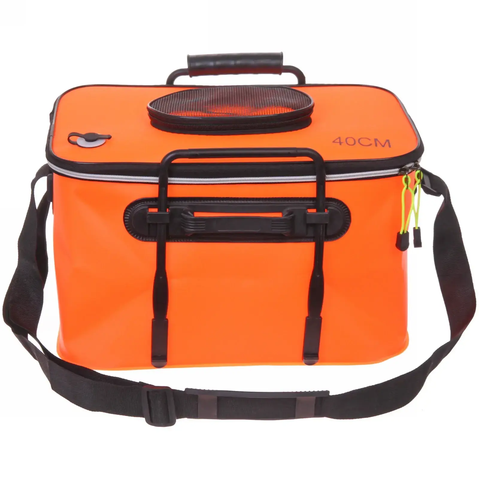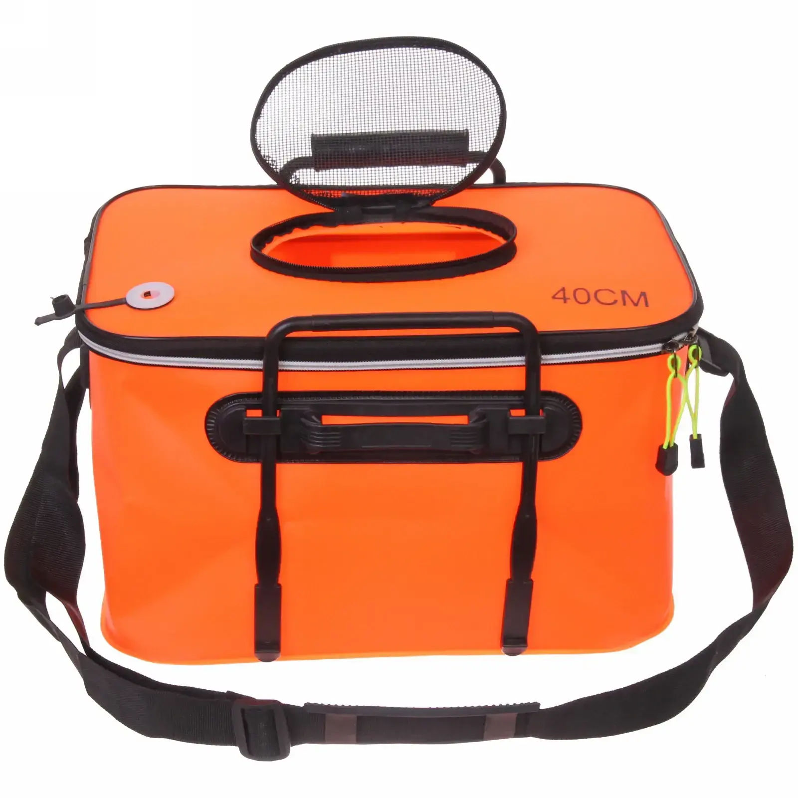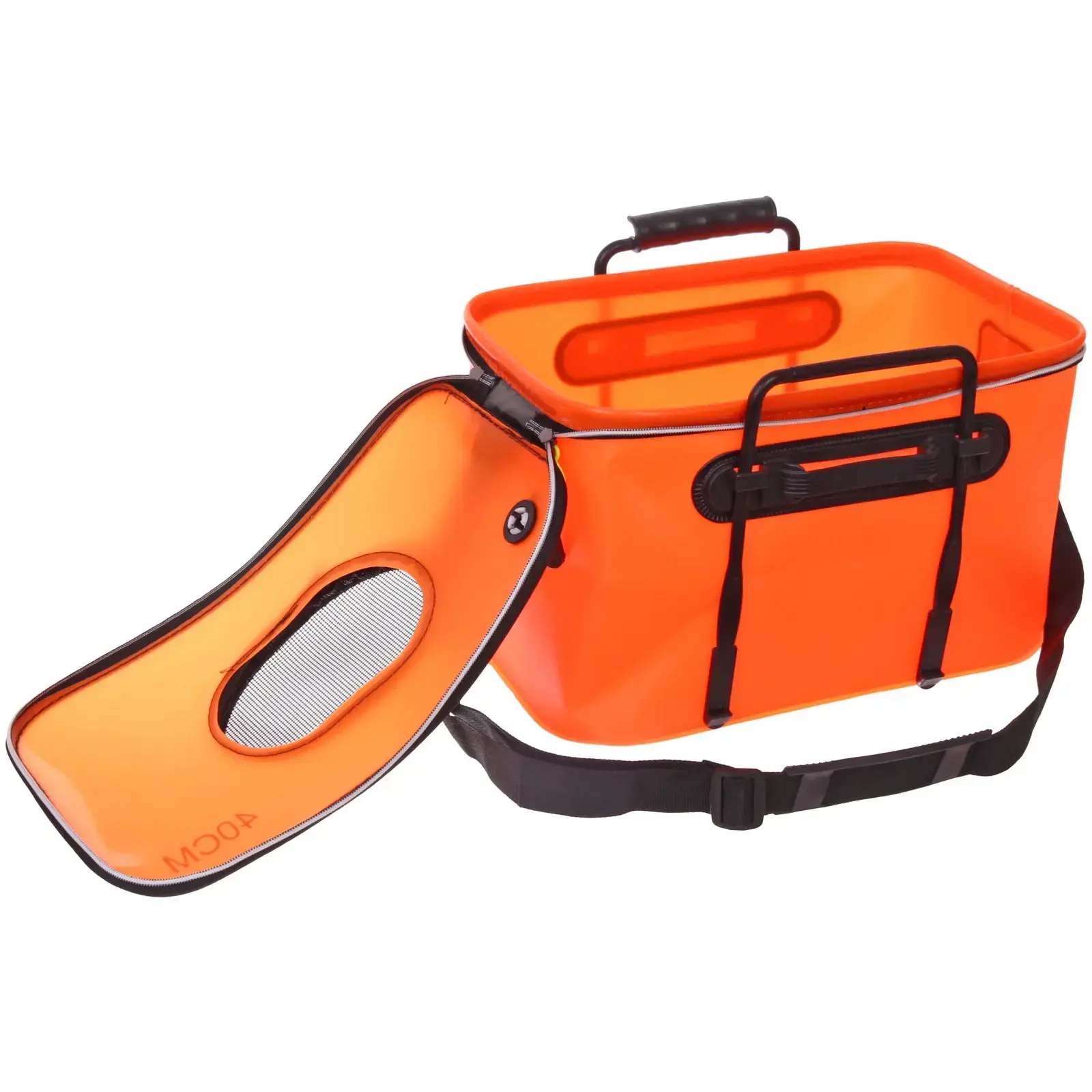 Плотный ПВХ-материал с усиленными швами обеспечивает полную водонепроницаемость даже при длительном контакте с влагой. Жёсткий каркас сохраняет форму при нагрузке до 15 кг, а эргономичные ручки и регулируемый плечевой ремень делают переноску комфортной.