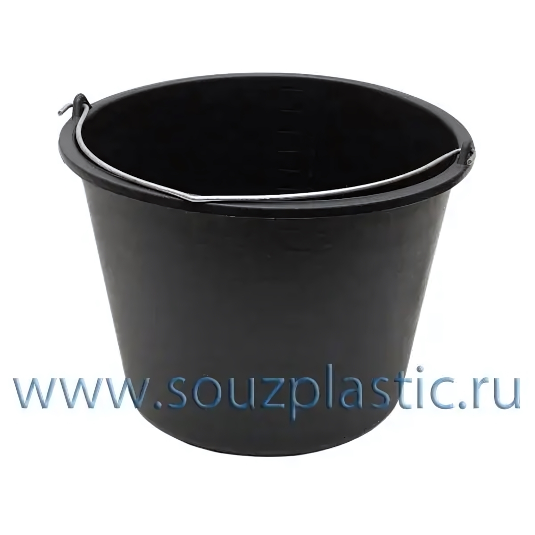 Ведро строительное 12л с металлическим ободом, мерные деления, пластик, цвет чёрный