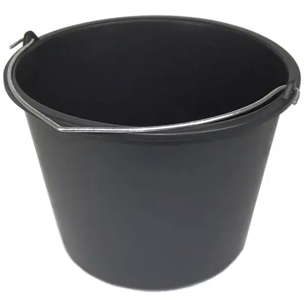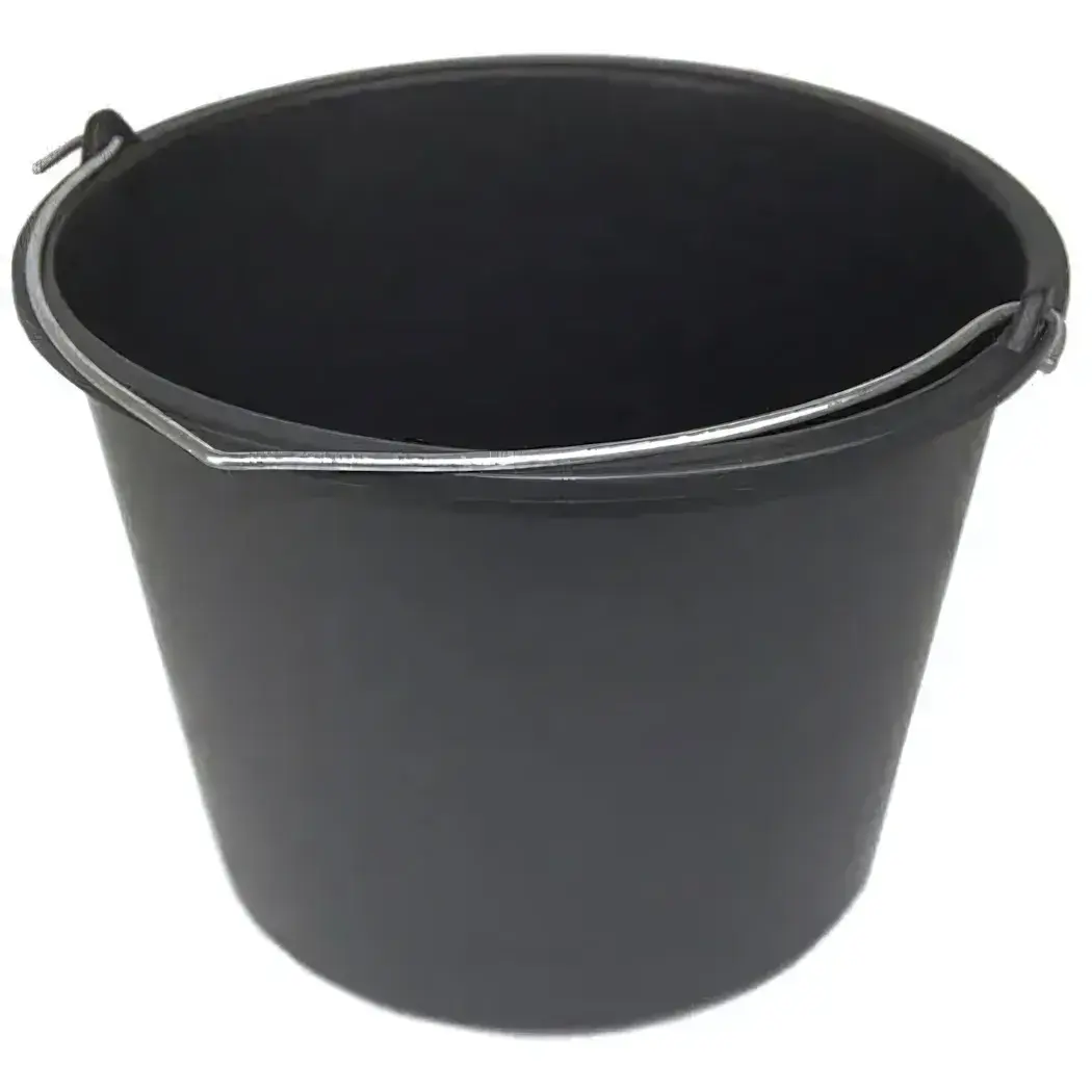 Ведро строительное пластиковое 16л, съемная ручка, черный цвет, усиленные стенки