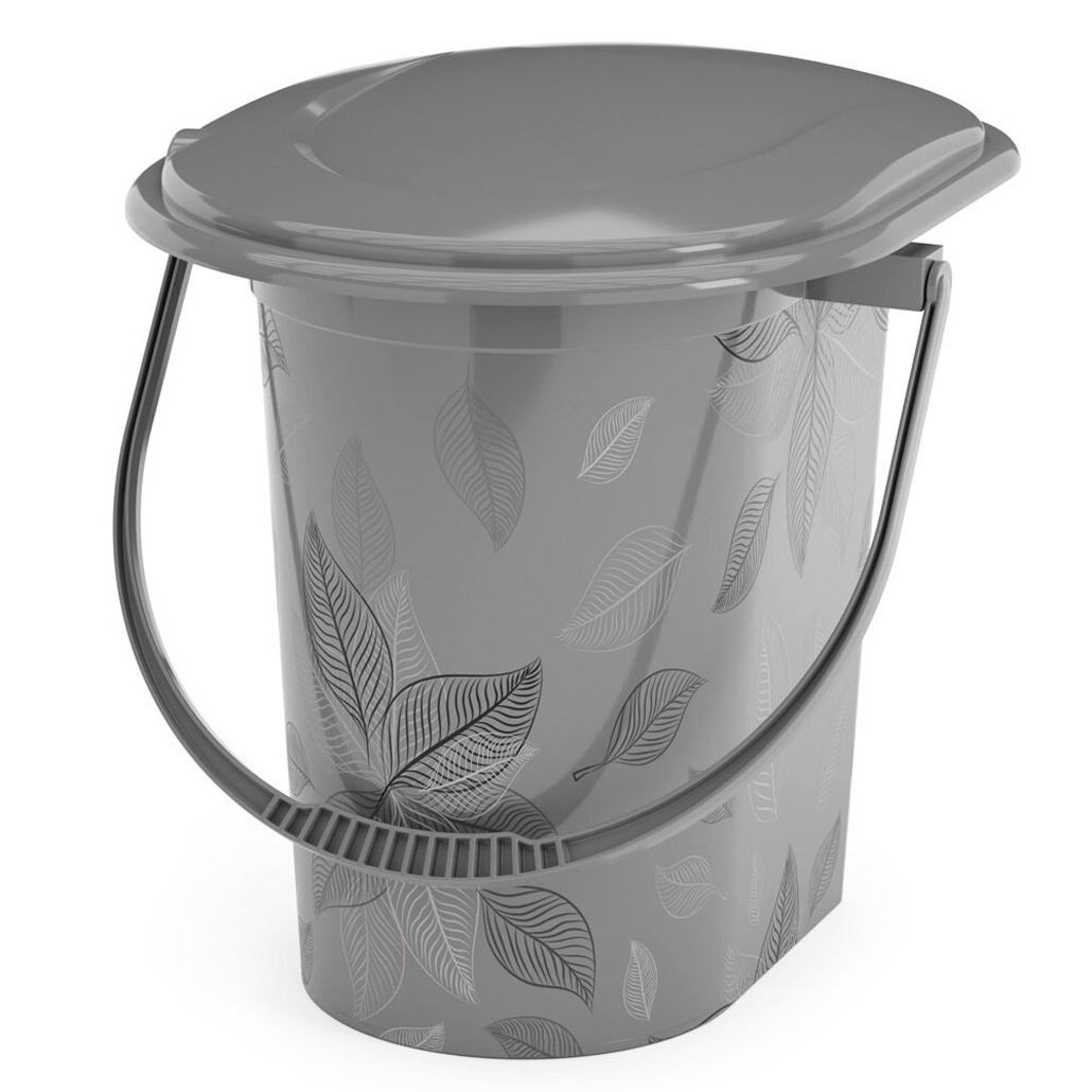 Объем ведра составляет 17 литров, что позволяет использовать его для длительного хранения. Серый цвет с рисунком в виде листьев придает ведру стильный вид, а гладкая поверхность облегчает уход за ним. Размеры ведра оптимальны для комфортного использования, а его форма позволяет легко помещать его в ограниченные пространства.