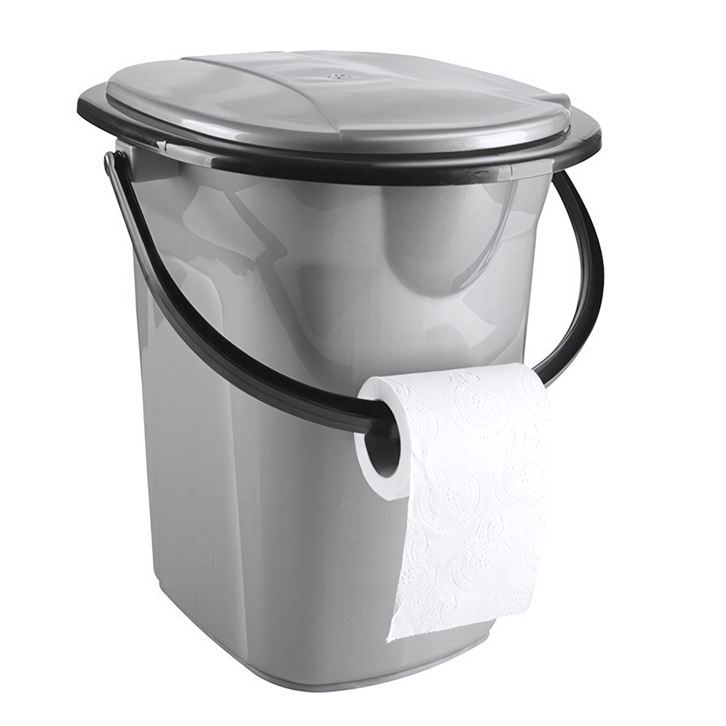 Ведро-туалет с держателем для бумаги, пластик, 19 л, серый, черная ручка