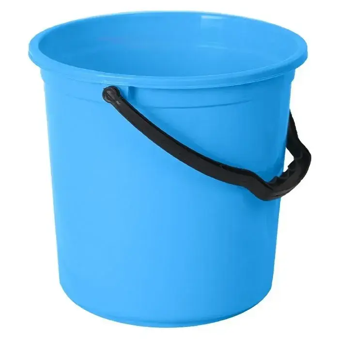 Цилиндрическая форма с расширенным горлом обеспечивает удобное наполнение и переноску жидкостей. Специальные крепления ручки предотвращают соскальзывание во время использования. Подходит для воды, моющих растворов и сыпучих материалов.