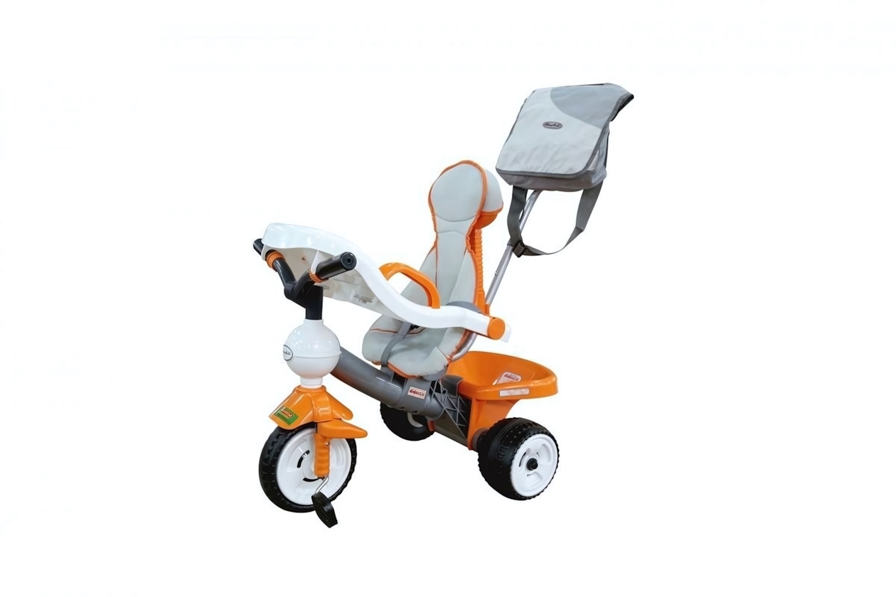 Велосипед трехколесный "Дидактик №2", оранжевый/серый, с ручкой и интерактивной панелью