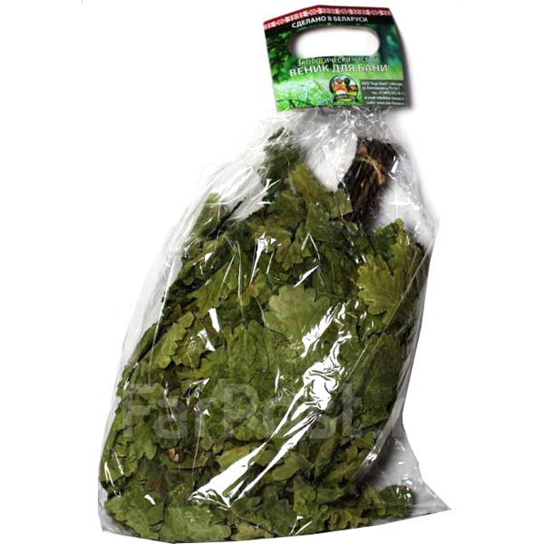 - Традиционный дубовый веник, который известен своими полезными свойствами.
