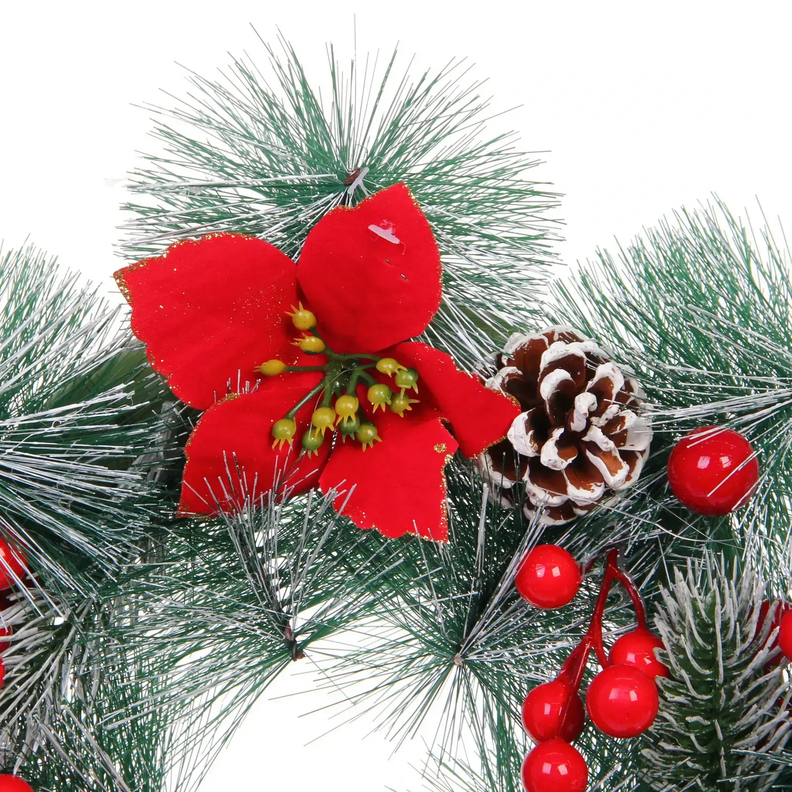 Декоративный венок «Лесная сказка» — это идеальное решение для создания уютной и праздничной атмосферы в вашем доме. Его яркие красные цветы и насыщенные зеленые иголки привнесут в ваш интерьер дух Рождества и зимних праздников. Этот венок станет отличным украшением для двери, стены или камина, добавляя нотку волшебства в каждый уголок вашего дома.