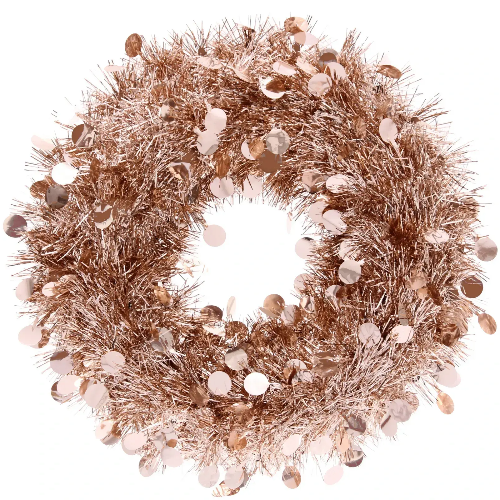 Венок декоративный «Изящный блеск» 38см, розовое золото, пушистый, ПВХ