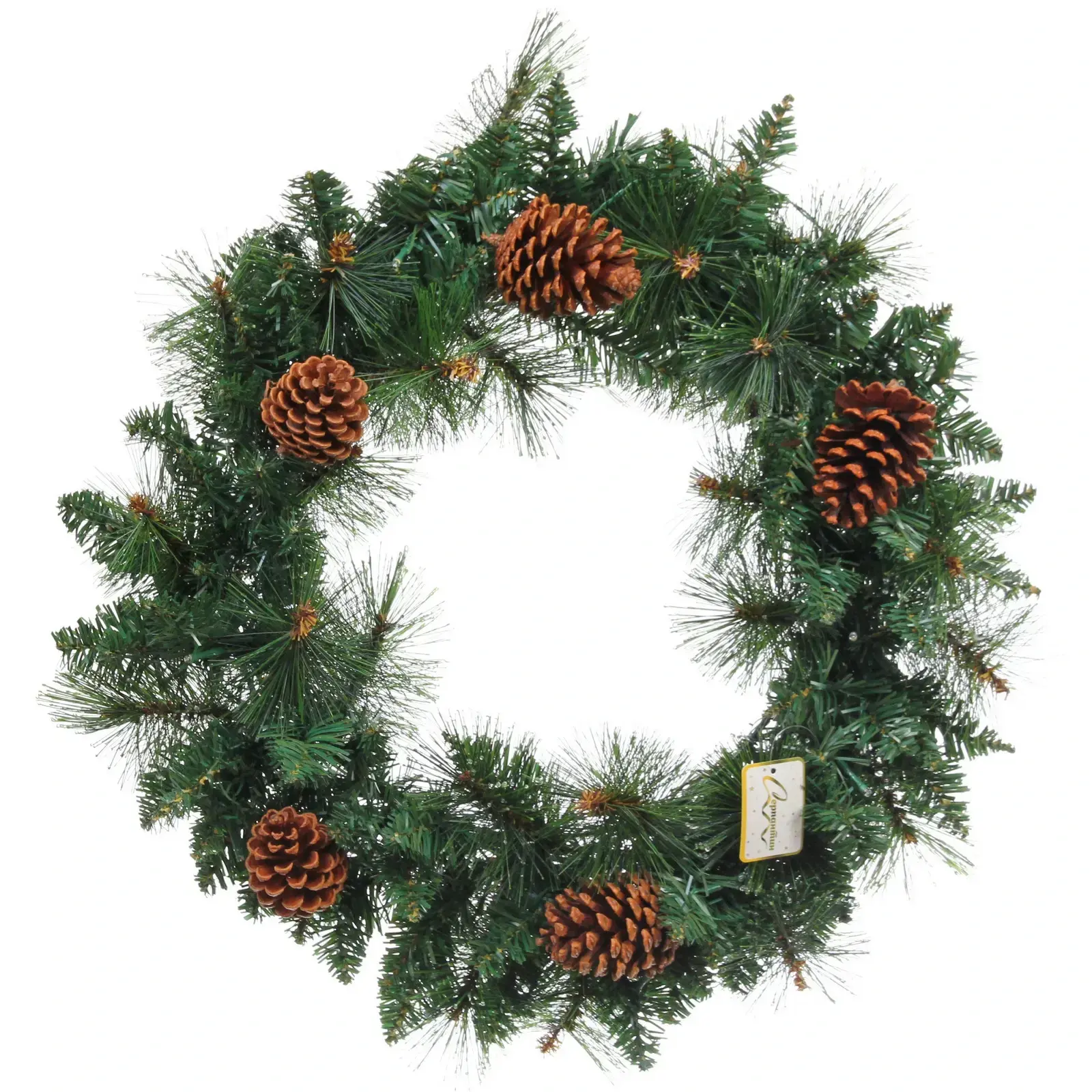 Создайте атмосферу уюта и праздника с венком хвойным «Богатство шишек». Этот стильный и объемный венок диаметром 60 см станет идеальным украшением для вашего дома в новогодние праздники. Он выполнен из качественного ПВХ, что обеспечивает долговечность и устойчивость к внешним воздействиям. Венок украшен натуральными по внешнему виду шишками, которые добавляют ему особый шарм и создают эффект близости к природе.