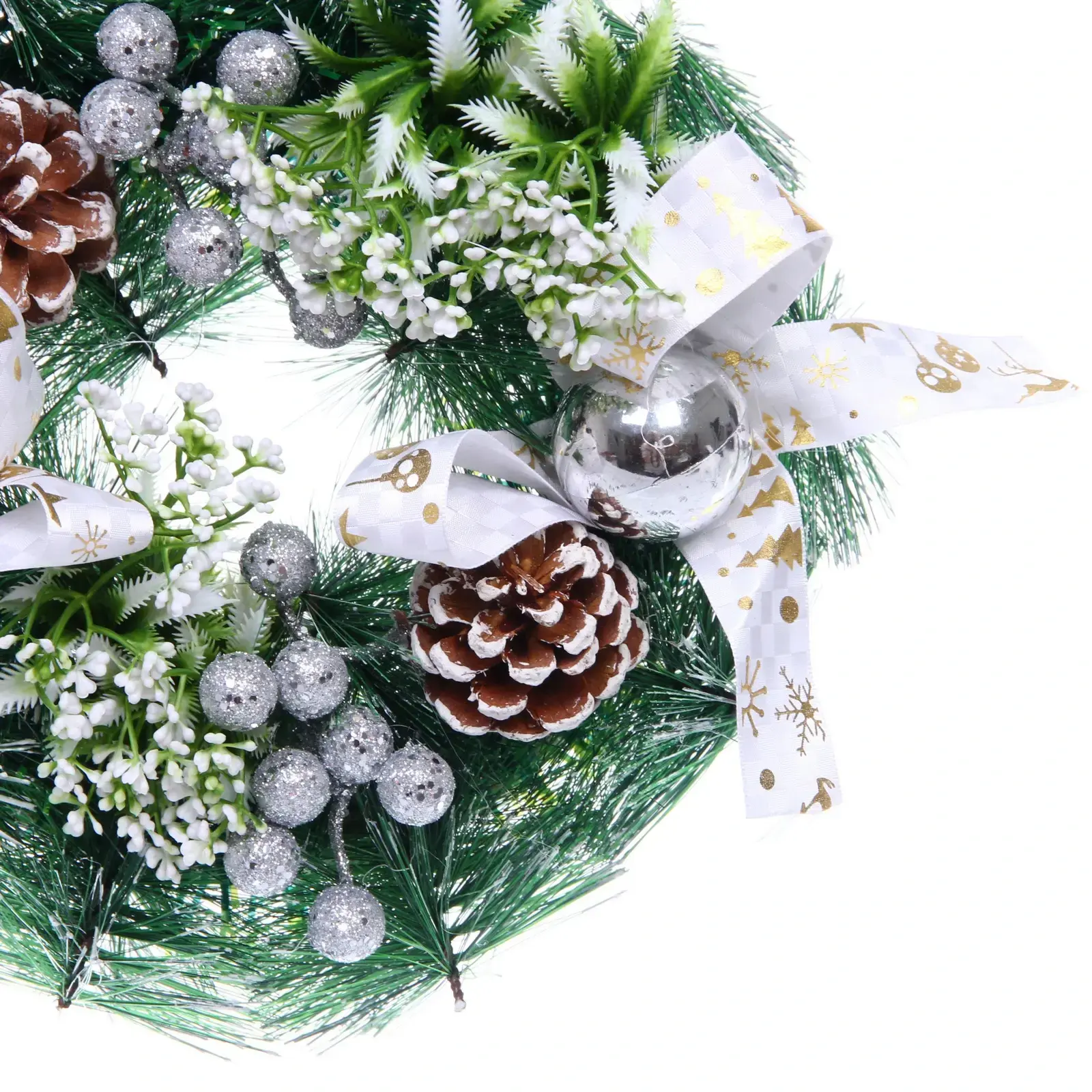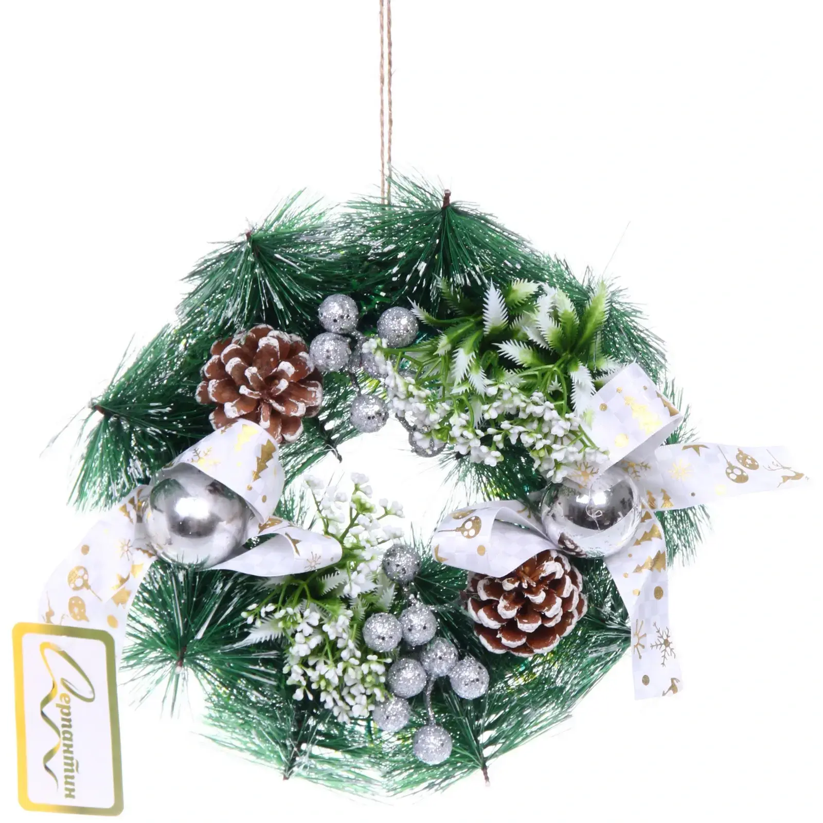 Венок новогодний 'Лесное очарование' d-25см, серебро/зеленый, металл/пластик