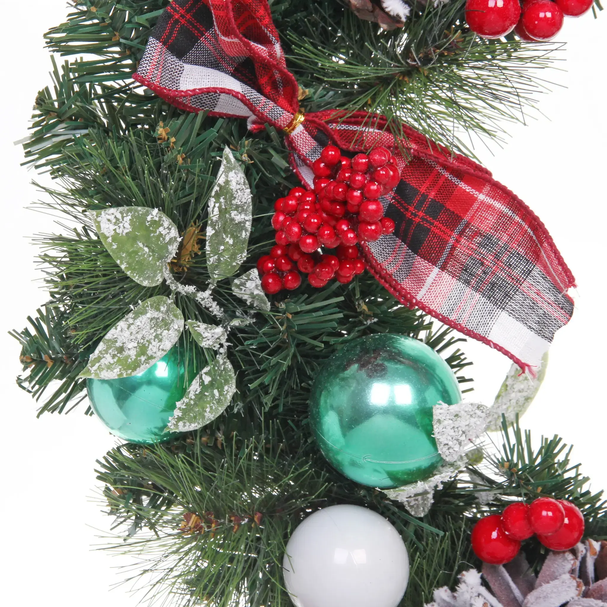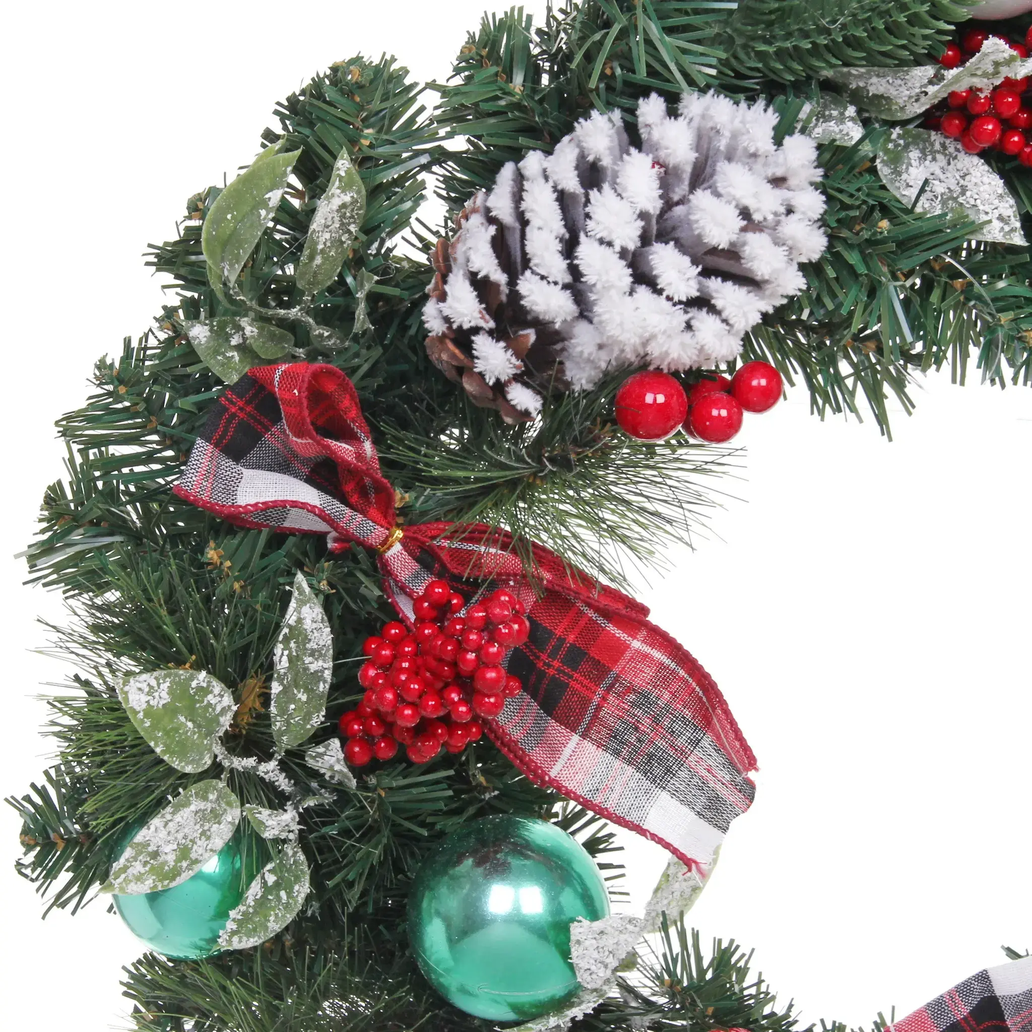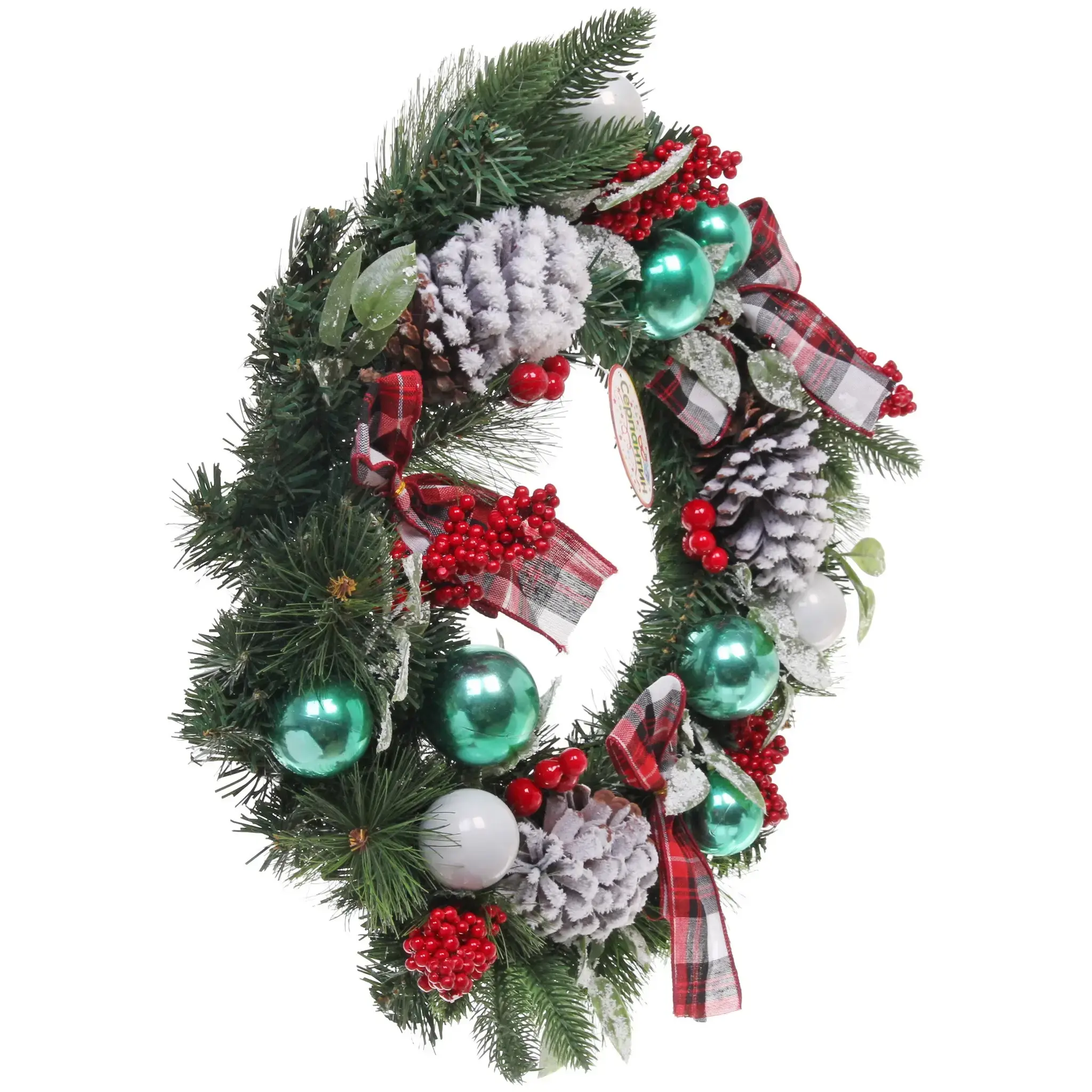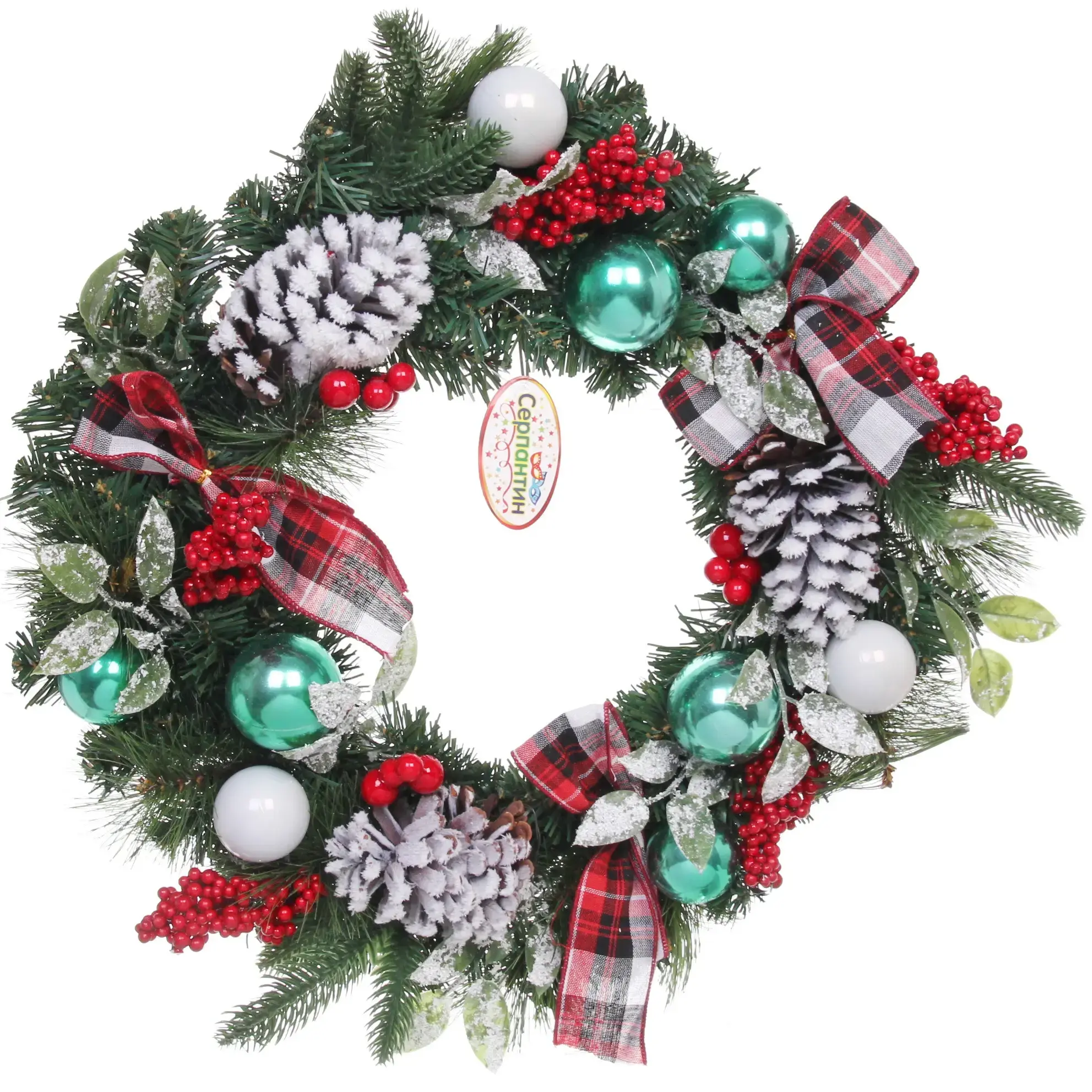 Венок новогодний «Рождественский день», 50см, ПВХ/металл, с шишками и ягодами