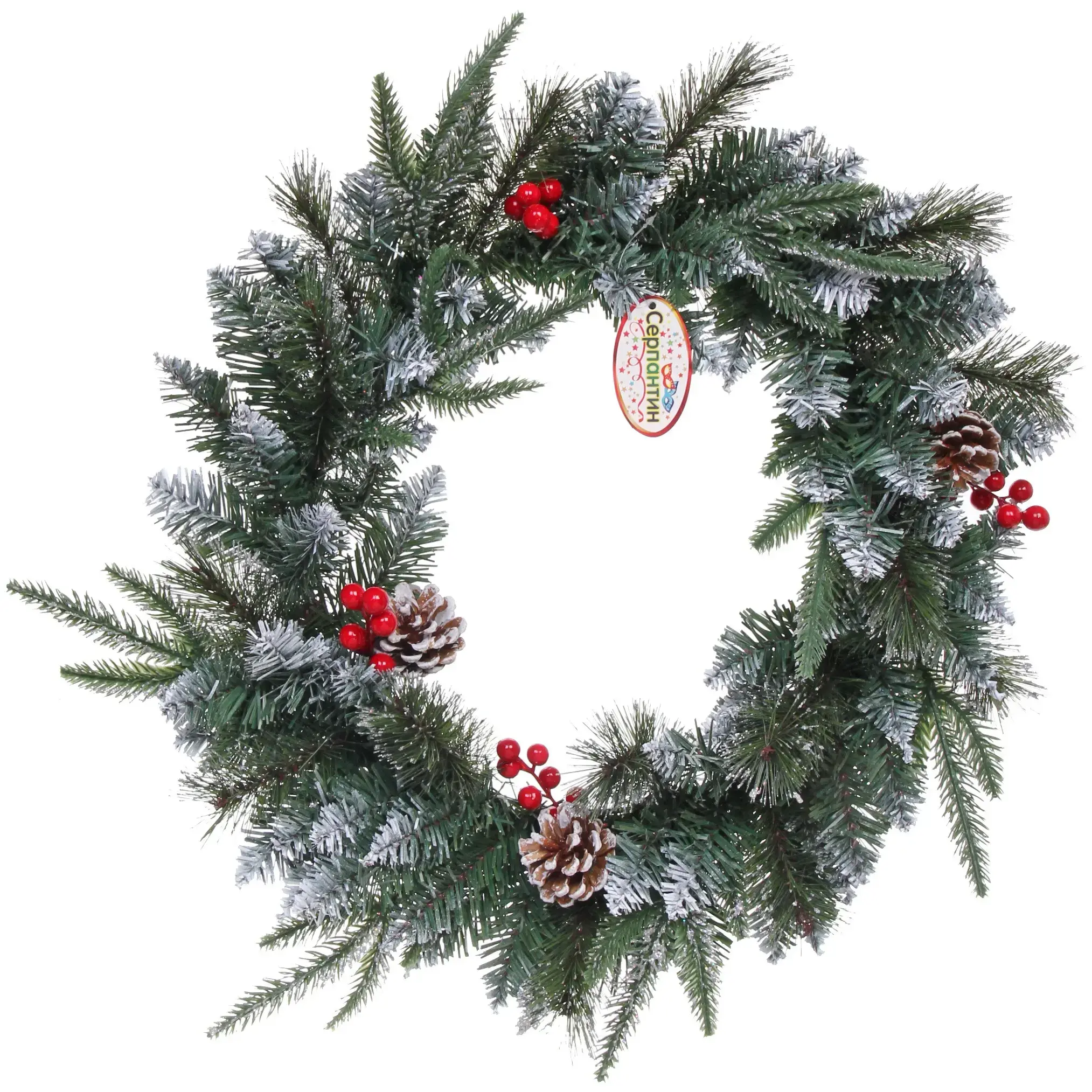 Венок новогодний "Заснеженный лес" 50см, ПВХ/металл, с шишками и ягодами