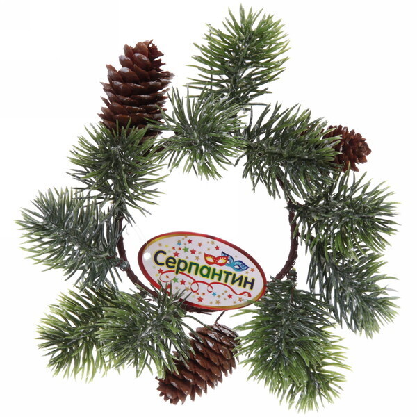 Венок выполнен в зеленом цвете с добавлением коричневых элементов, что делает его универсальным для любого стиля оформления. Он украшен пластиковыми элементами, имитирующими еловую листву, что придает ему объем и натуральность. Размер венка — 20 см в диаметре, что позволяет легко разместить его в любом уголке вашего дома.