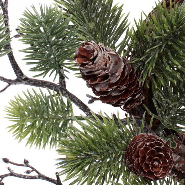 Размер венка составляет 40 см в диаметре, что делает его универсальным для различных пространств. Его яркие зеленые ветки и натуральные шишки создают эффектный визуальный акцент, который привлечет внимание ваших гостей. Венок «Золотистый лес» станет не только украшением, но и символом тепла и уюта в вашем доме в новогодние праздники.
