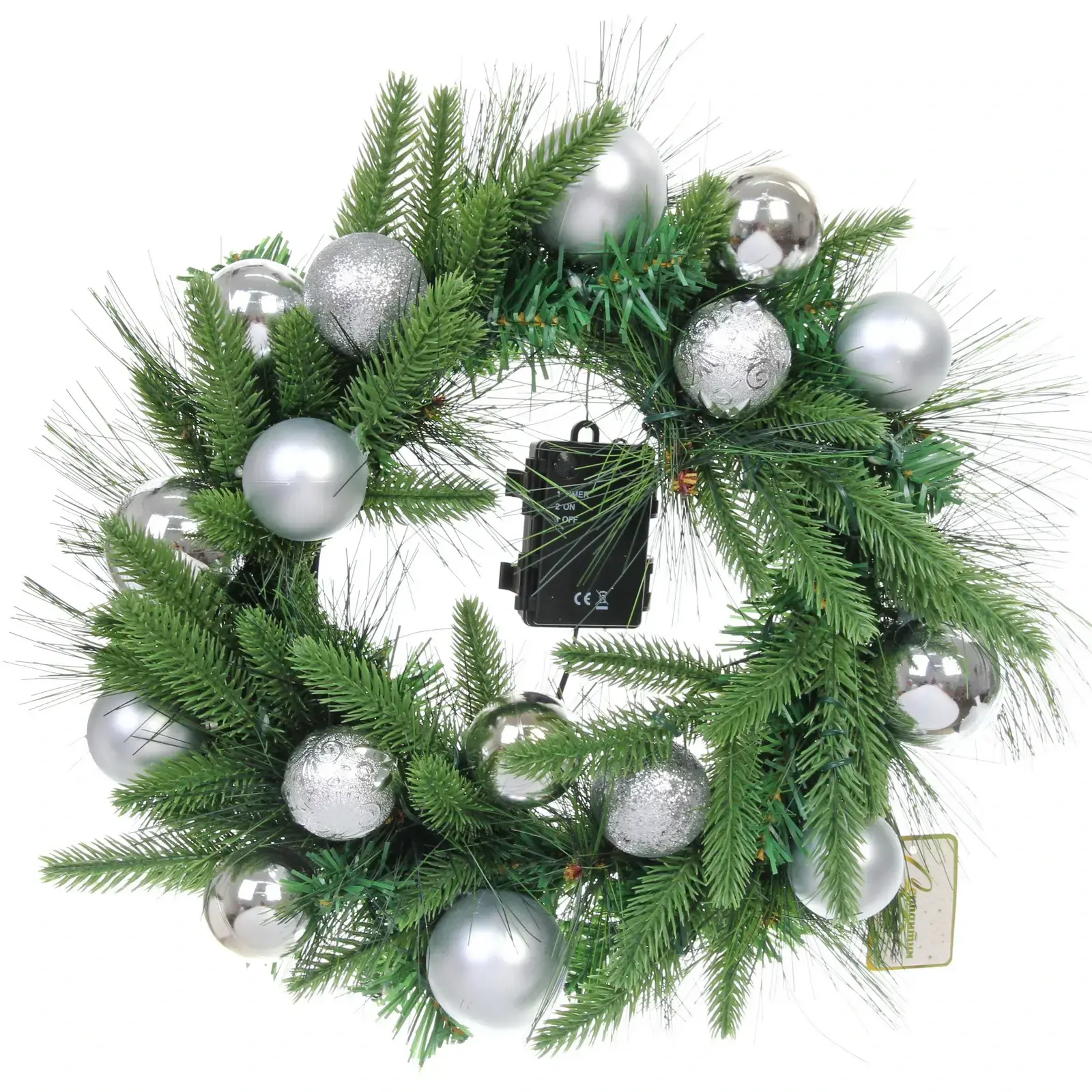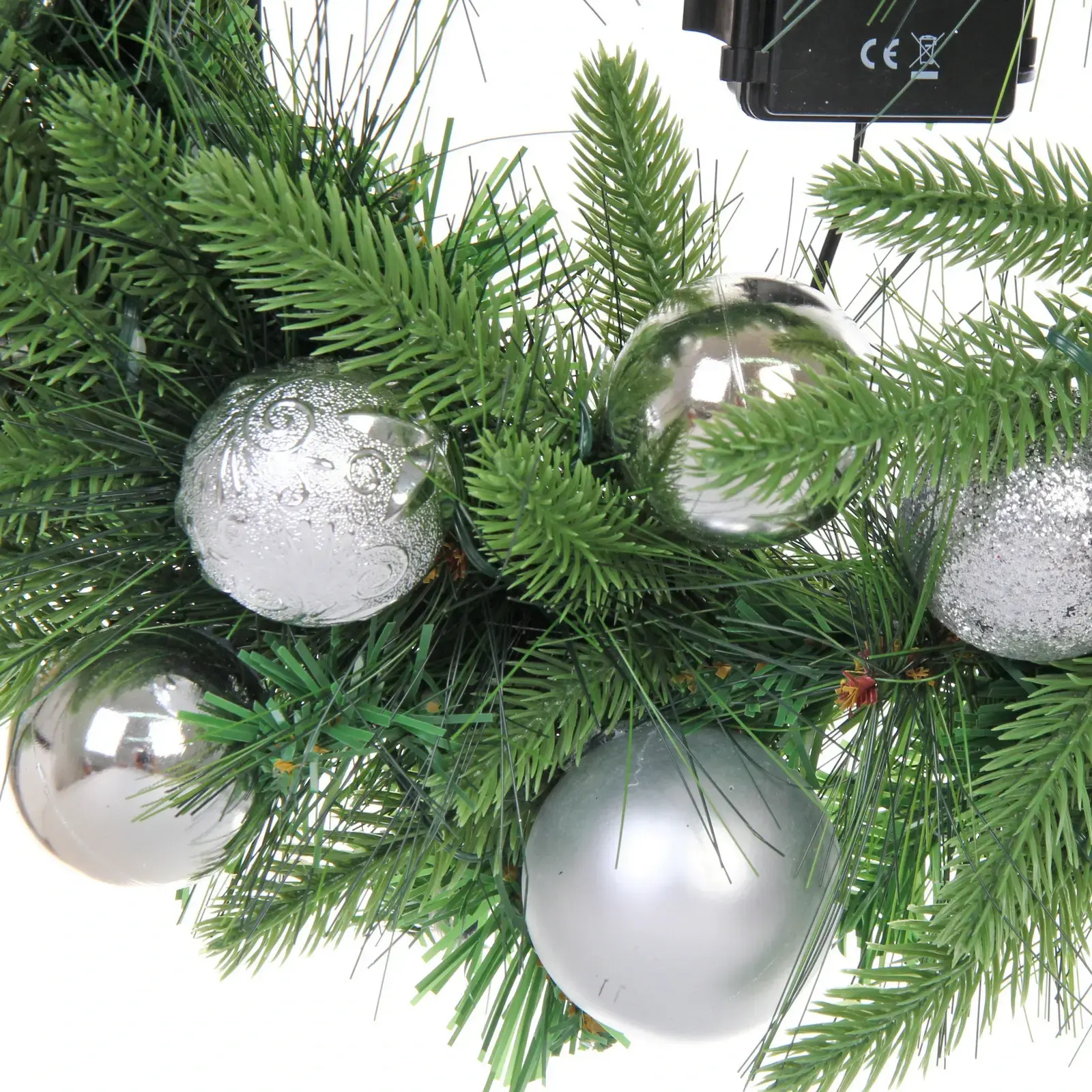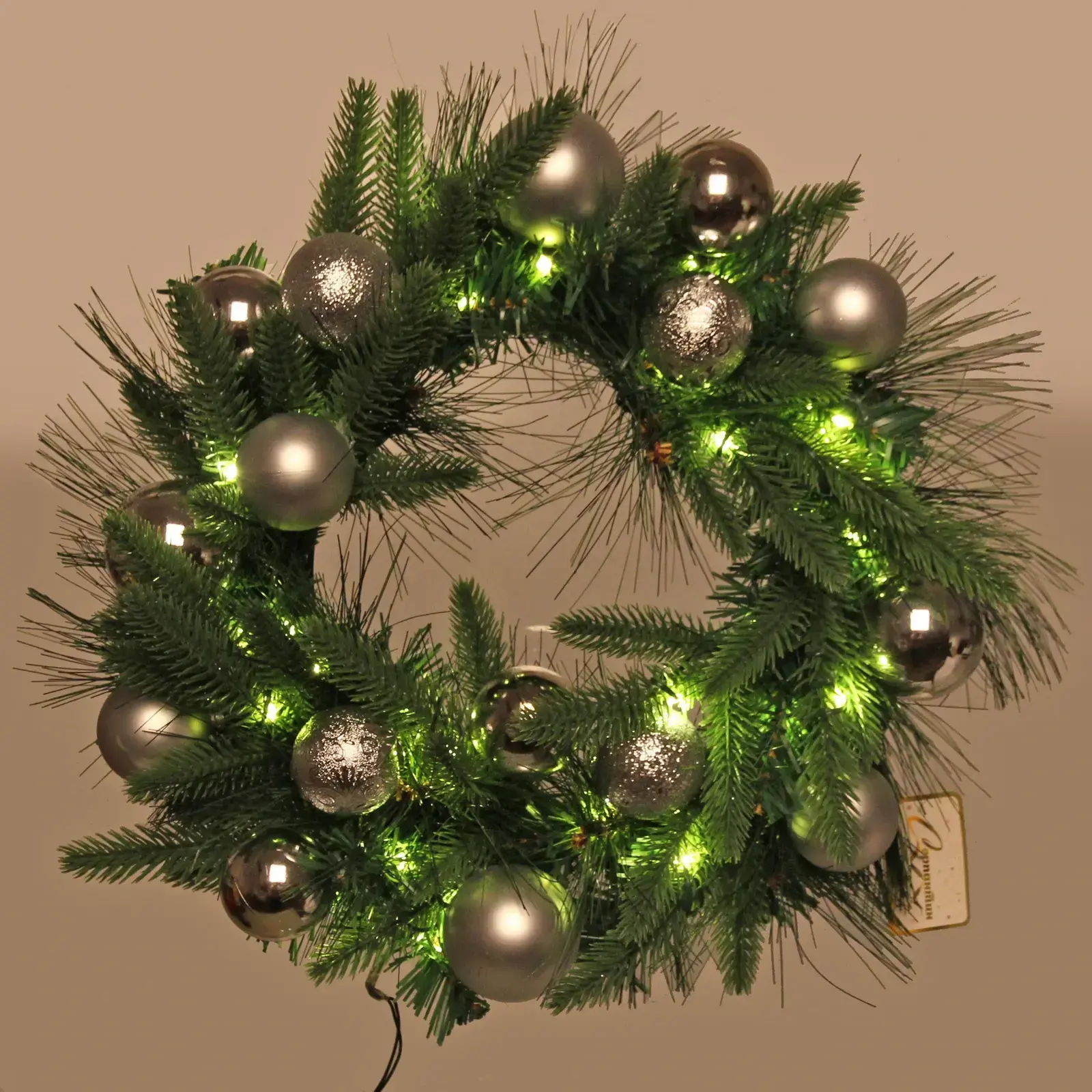 Венок диаметром 40 см выполнен из качественного литого ПВХ, что обеспечивает его долговечность и устойчивость к внешним воздействиям. Он прекрасно подходит для декорирования дверей, стен или окон, а также может использоваться как элемент праздничного оформления на мероприятиях. Благодаря встроенной подсветке с зелеными огоньками, венок будет выглядеть особенно эффектно в вечернее время, создавая уютную атмосферу.