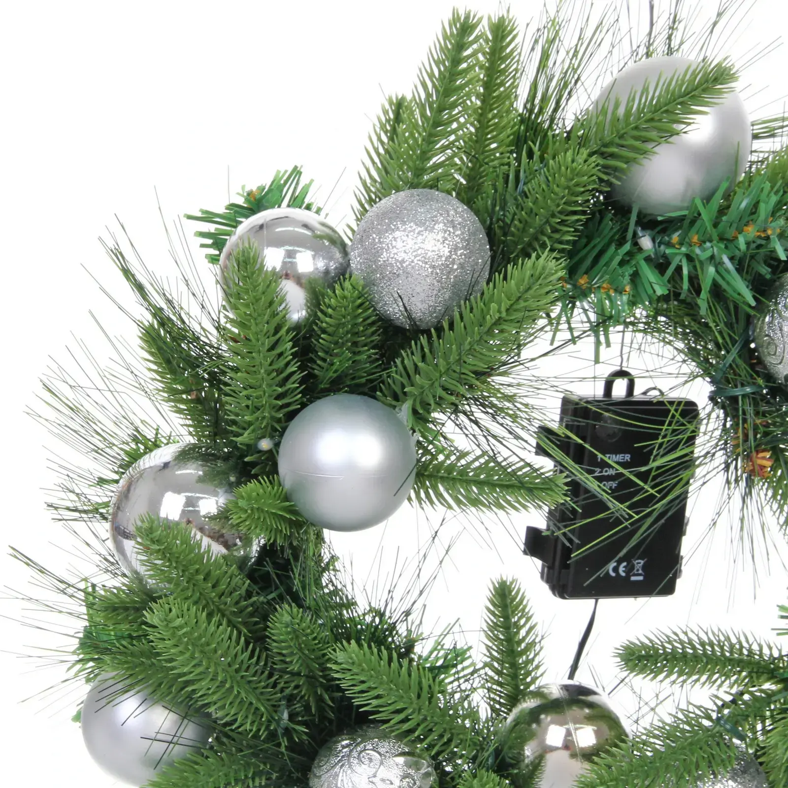 Выбирая венок «Сказочное чудо», вы получаете не только красивое украшение, но и практичное решение для новогоднего декора. Его искусственная хвоя выглядит натурально и не требует особого ухода, что позволяет вам наслаждаться праздником без лишних забот. Серебристые шары различной текстуры добавляют интересные акценты, а встроенная подсветка создает волшебное свечение, которое привлечет внимание ваших гостей.