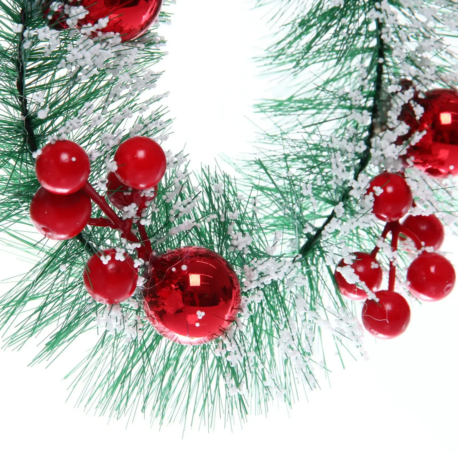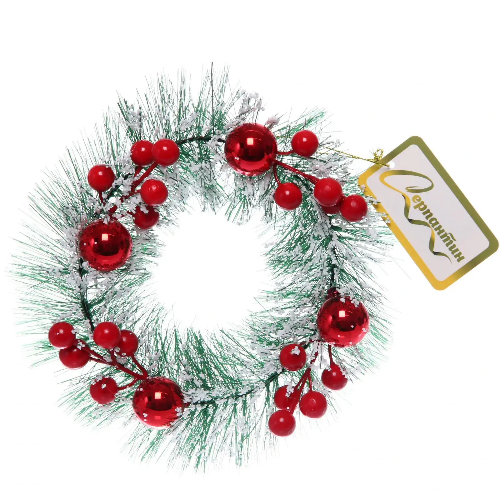 Венок новогодний «Волшебное украшение» 20 см с ягодами и снегом, металл/пластик