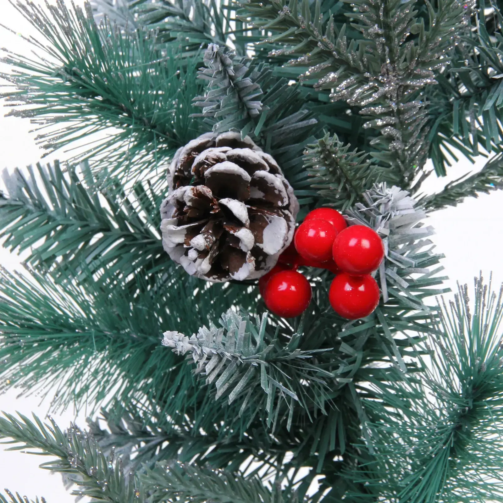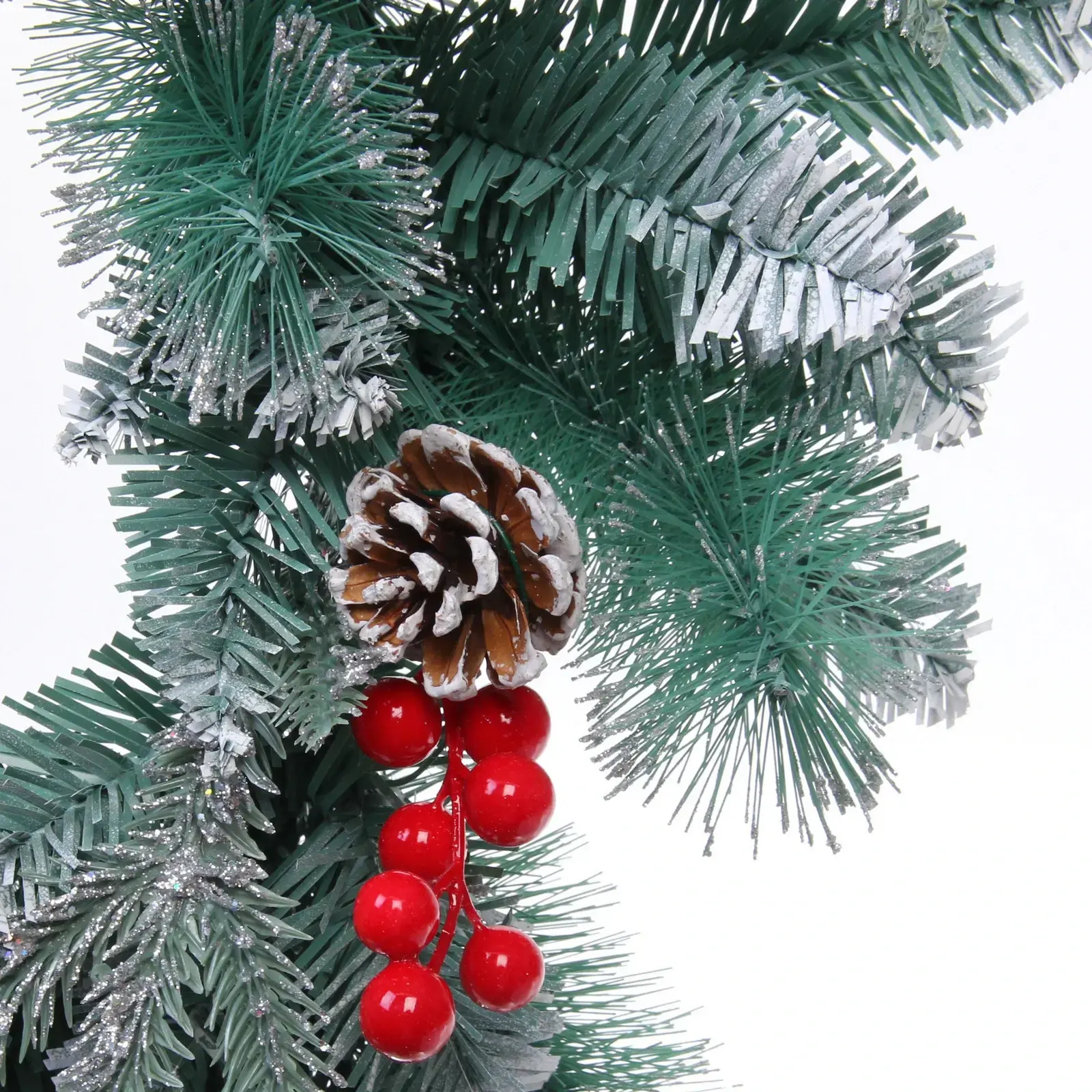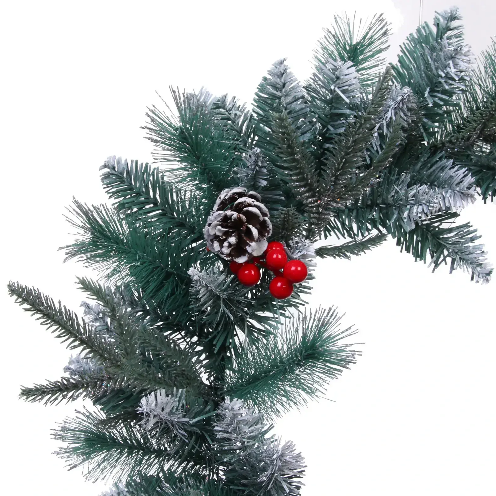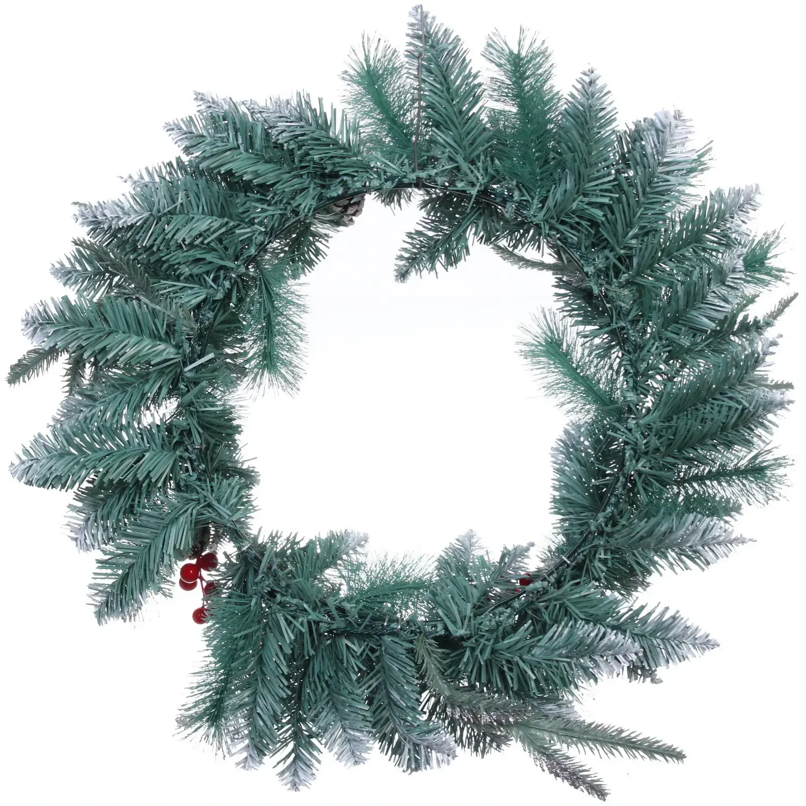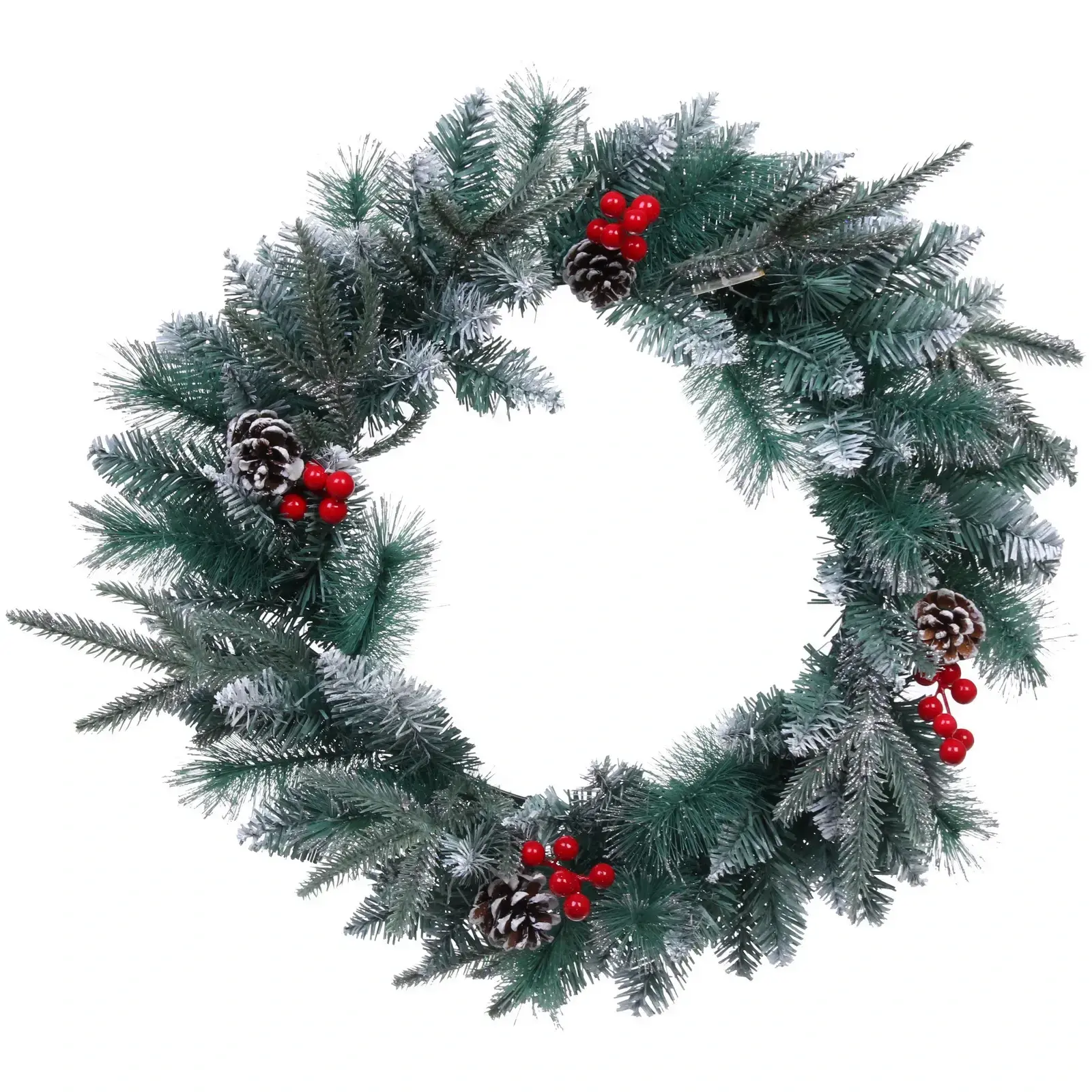 Венок изготовлен из высококачественного ПВХ, что делает его легким и долговечным. Его размеры (d-50 см) идеально подходят для создания акцента в любом пространстве. Не упустите возможность добавить этот великолепный венок в свою коллекцию новогодних украшений и наслаждайтесь атмосферой праздника каждый день!