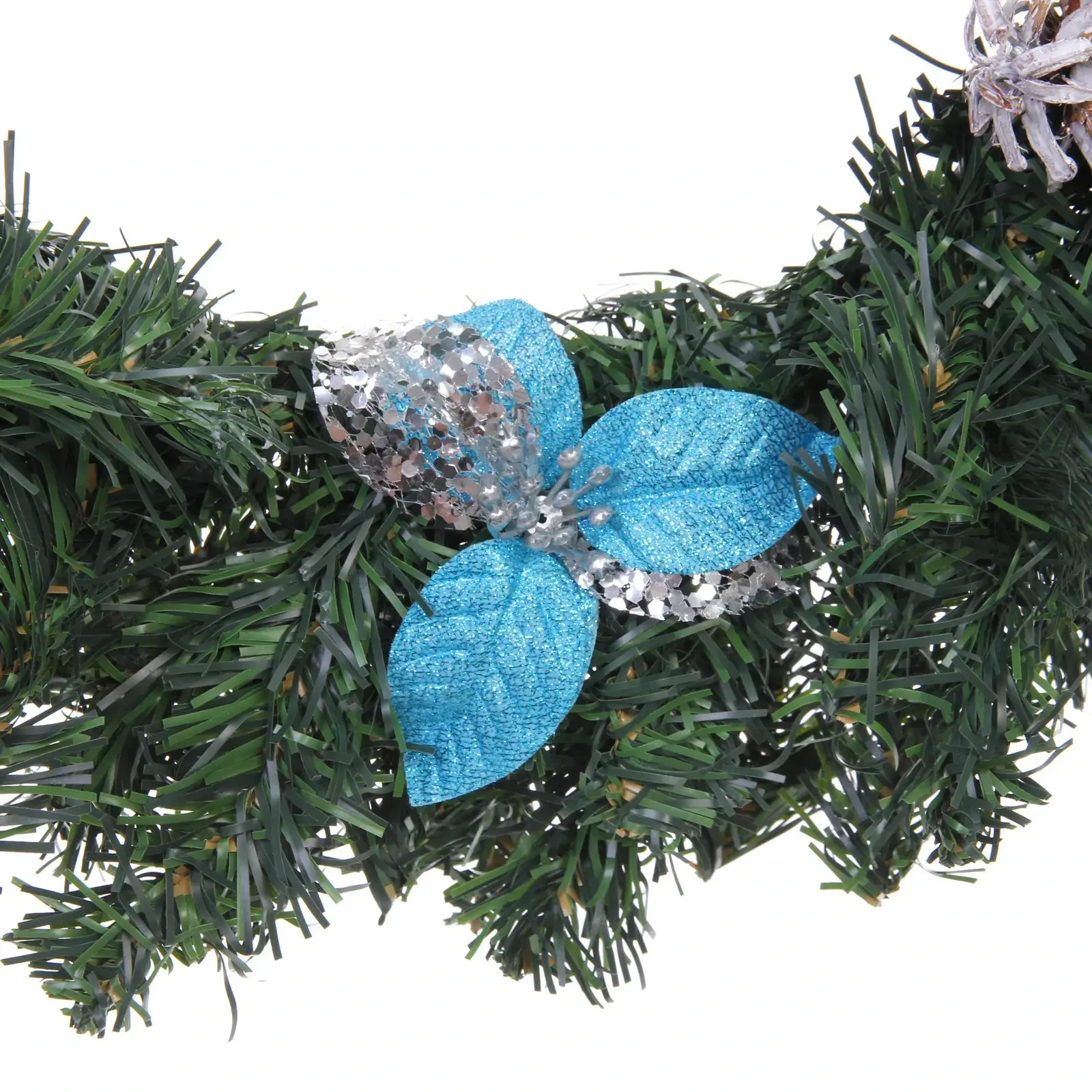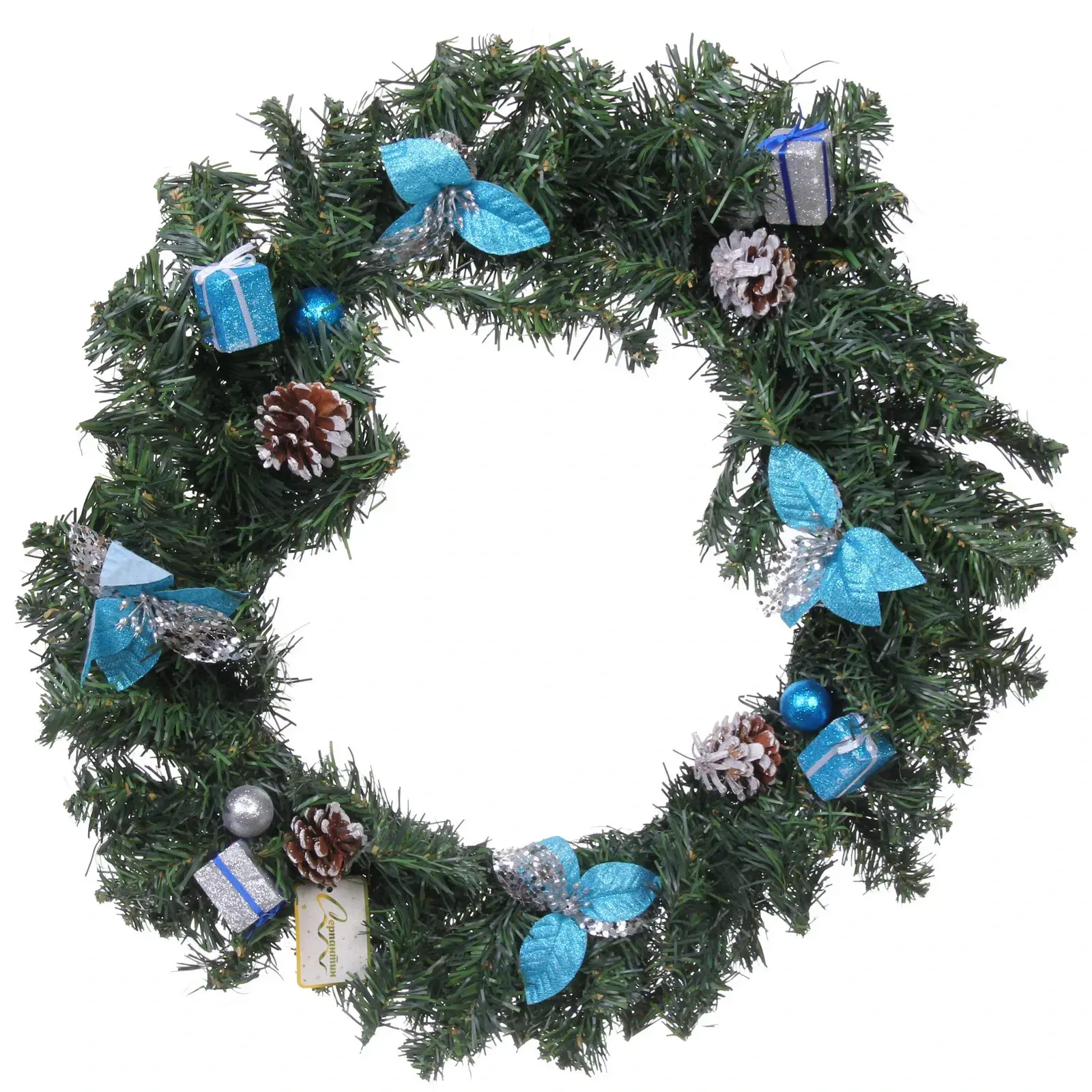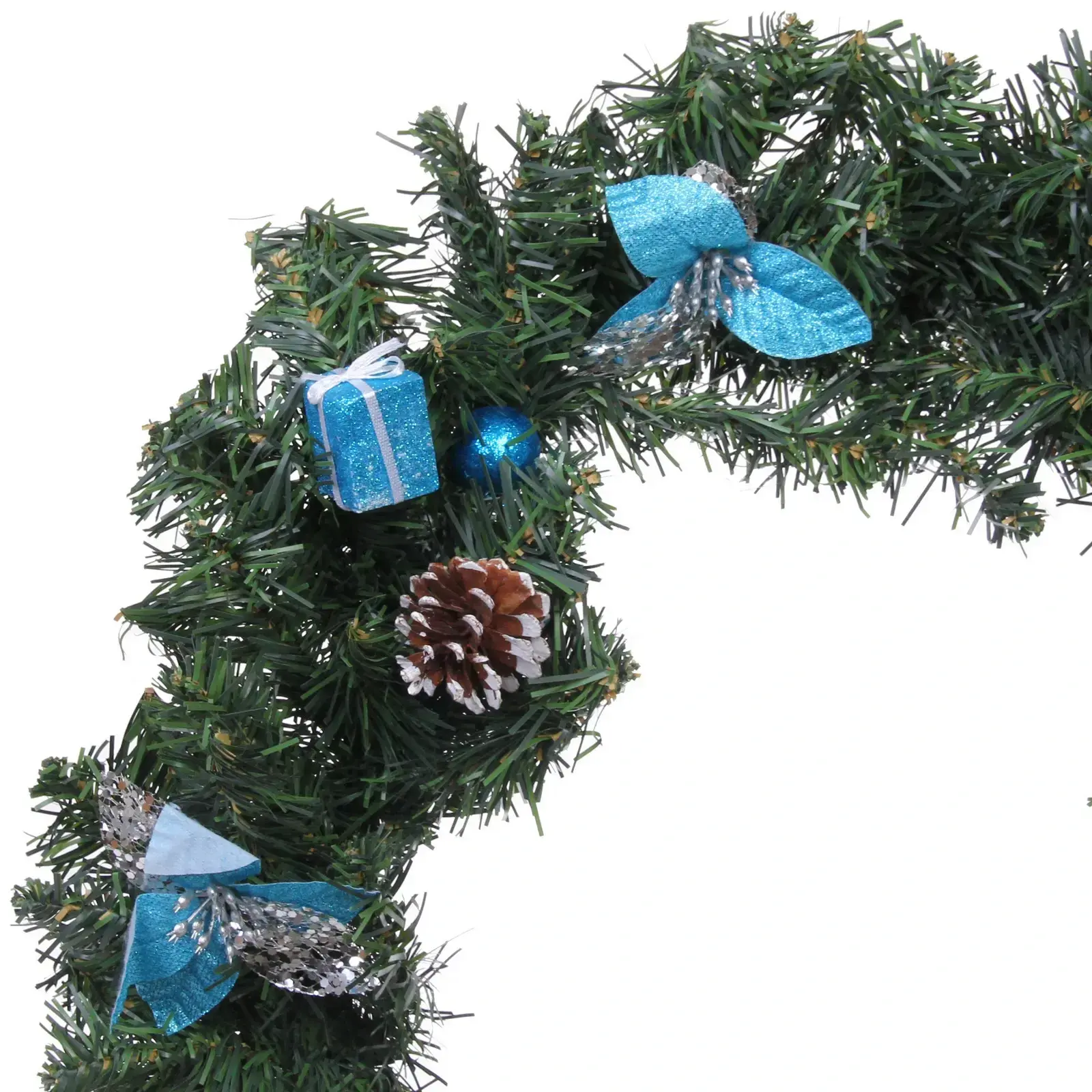 Этот венок изготовлен из качественных материалов: металл и ПВХ, что обеспечивает его долговечность и устойчивость к внешним воздействиям. Искусственная хвоя выглядит натурально и не требует особого ухода, что экономит ваше время. Декоративные элементы, такие как голубые ленты и бантики, добавляют изысканности и делают венок по-настоящему уникальным.