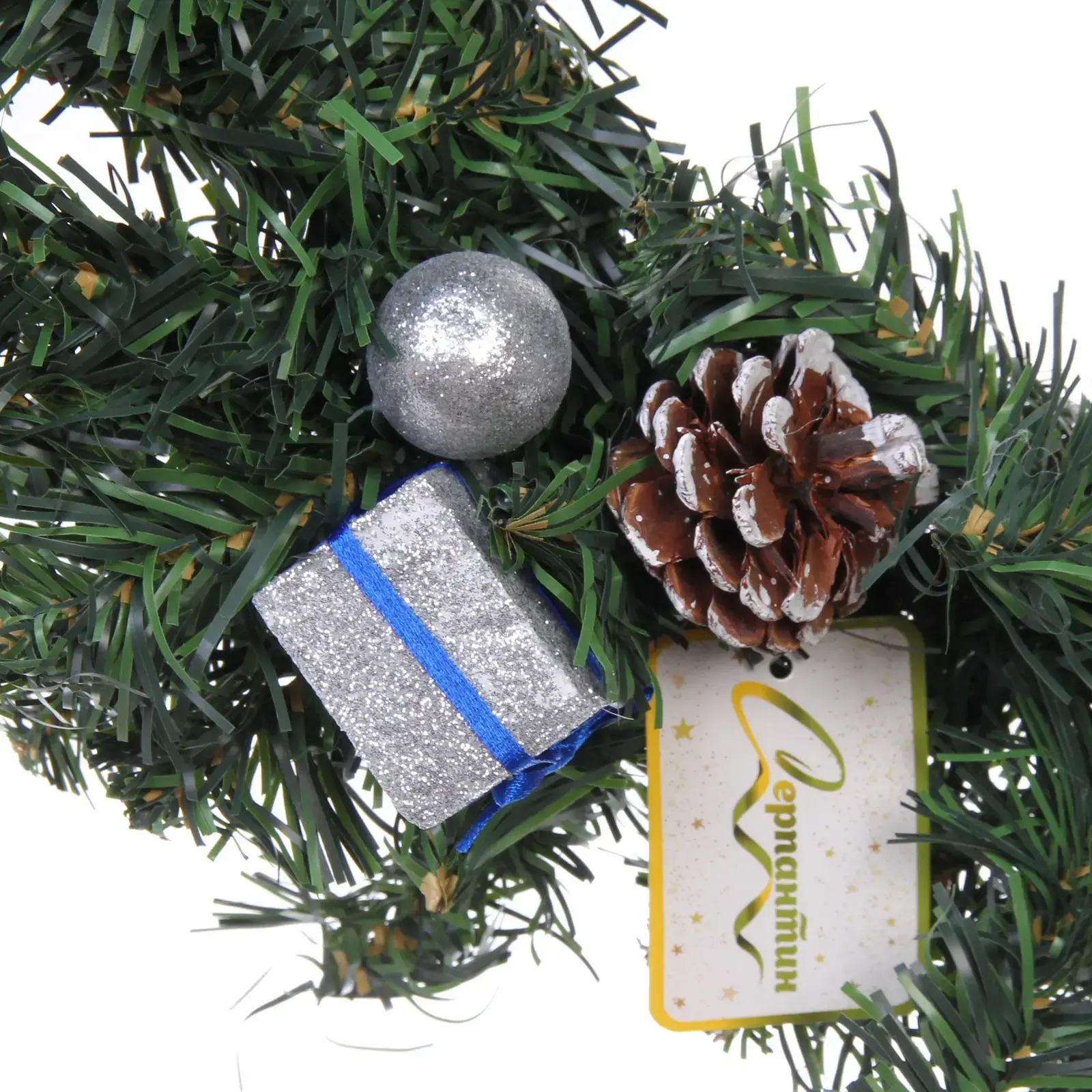 Создайте атмосферу праздника с венком хвойным «Зимние подарки» диаметром 50 см. Этот венок станет ярким акцентом в вашем интерьере, добавляя уют и радость в новогодние праздники. Его голубой цвет и декоративные элементы, такие как шишки и маленькие подарки, создают волшебное настроение, которое порадует вас и ваших близких.