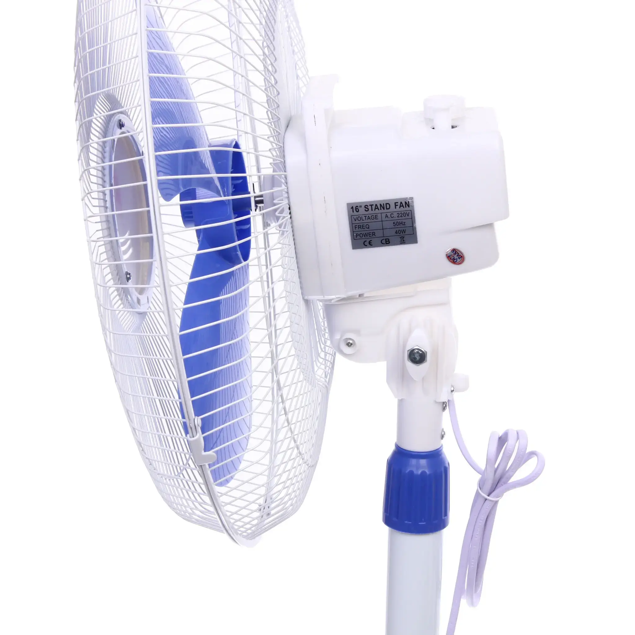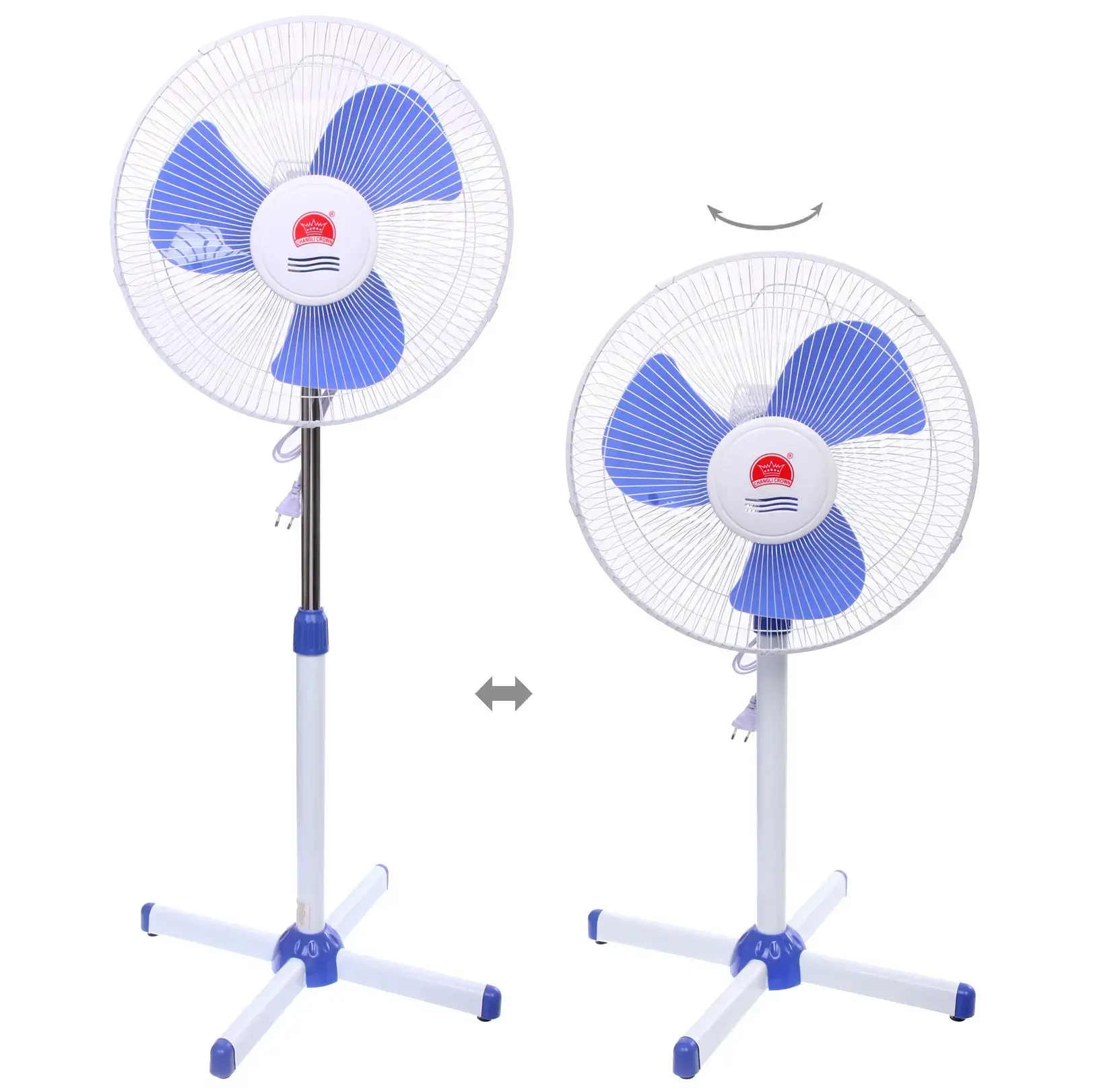 Вентилятор напольный «CHANGLI CROWN», 16 дюймов, регулируемая высота, металл/пластик, бело-синий