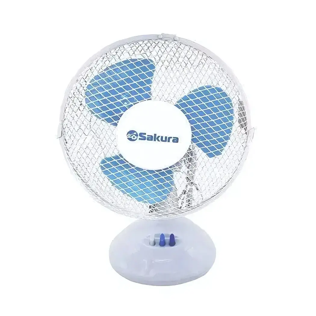 Вентилятор настольный SA-13B, компактный, белый корпус с голубыми лопастями, 2 скорости