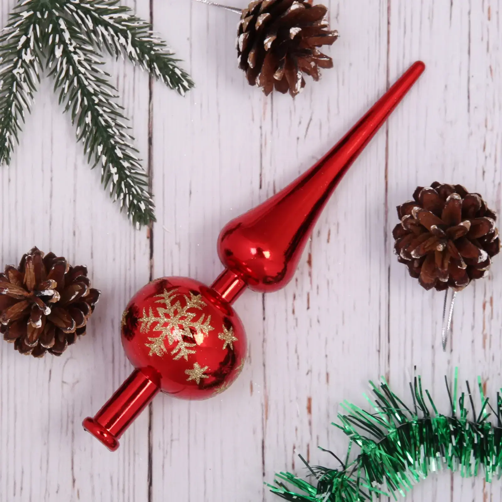 Размеры верхушки составляют 23 см в высоту, что делает её подходящей для ёлок различной высоты. Красный цвет с золотыми снежинками гармонично сочетается с другими новогодними украшениями, создавая единый стильный образ. Не упустите возможность сделать ваш праздник незабываемым с этой великолепной верхушкой на ёлку!