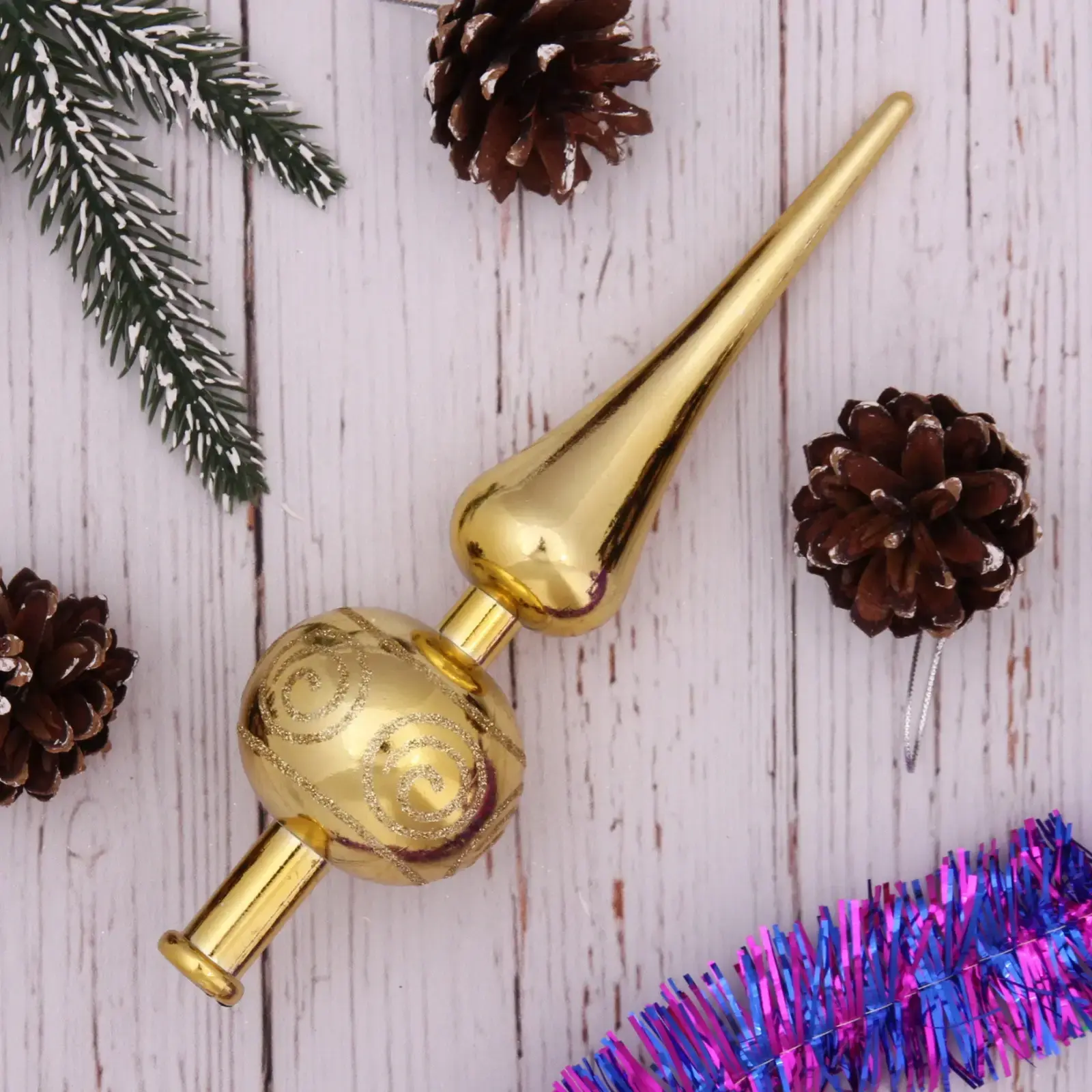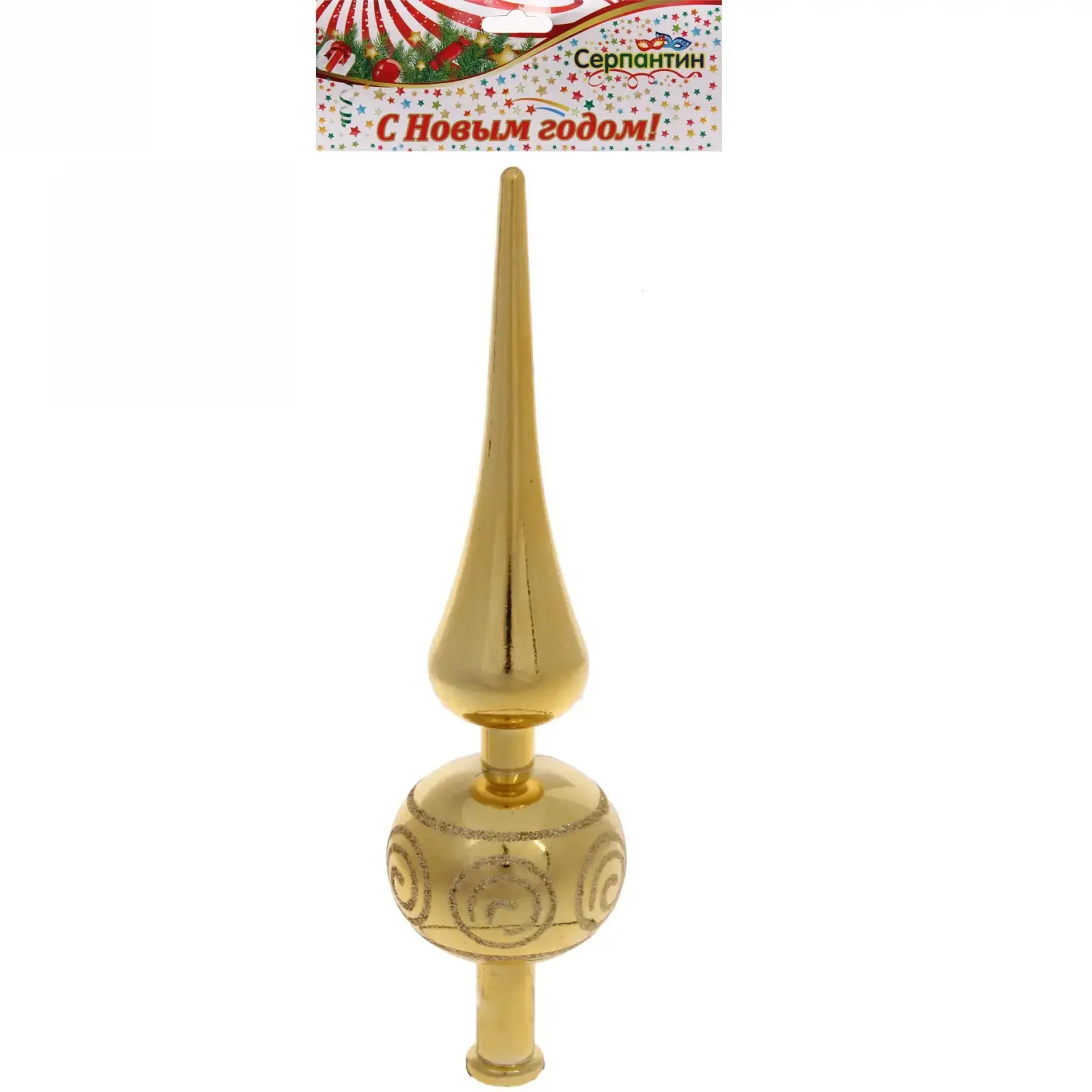 Эта великолепная верхушка на ёлку высотой 23 см станет идеальным завершающим акцентом для вашего новогоднего декора. Золотистый цвет и блестящая поверхность придают ей элегантный вид, который будет радовать глаз и создавать атмосферу праздника. Благодаря своему изысканному дизайну, украшенному спиралевидными узорами, она станет настоящей изюминкой вашей ёлки.