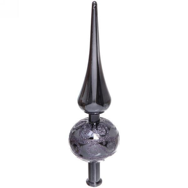Верхушка имеет размеры 23 см в высоту и выполнена в графитовом цвете, что делает её универсальным элементом для любого новогоднего оформления. Она состоит из двух частей: острого конуса и шарообразной основы, декорированной узором, что придаёт ей особый шарм. Не упустите возможность сделать ваш праздник незабываемым с этой великолепной верхушкой на ёлку!