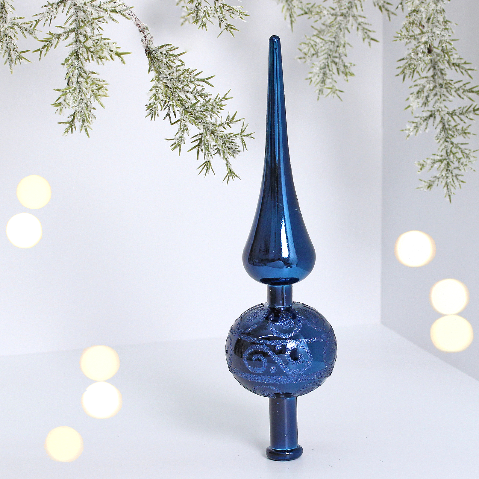 Верхушка на ёлку высотой 23 см с уникальным дизайном «Волшебный узор» станет идеальным завершающим акцентом для вашего новогоднего дерева. Она выполнена в насыщенном сапфировом цвете с блестящей поверхностью, что придаёт ей особую элегантность и праздничное настроение. Этот декоративный элемент не только украсит вашу ёлку, но и создаст атмосферу уюта и волшебства в вашем доме.