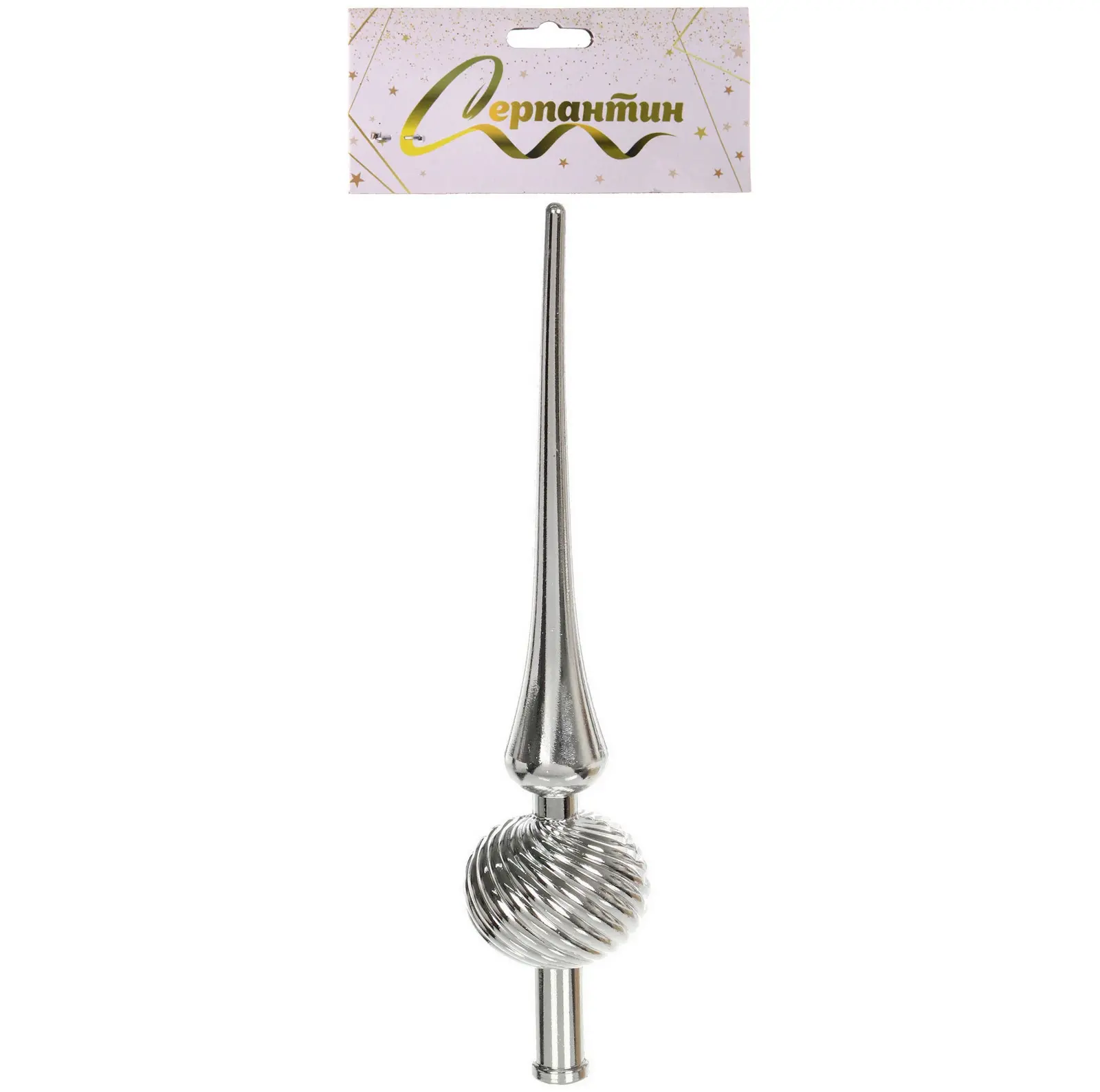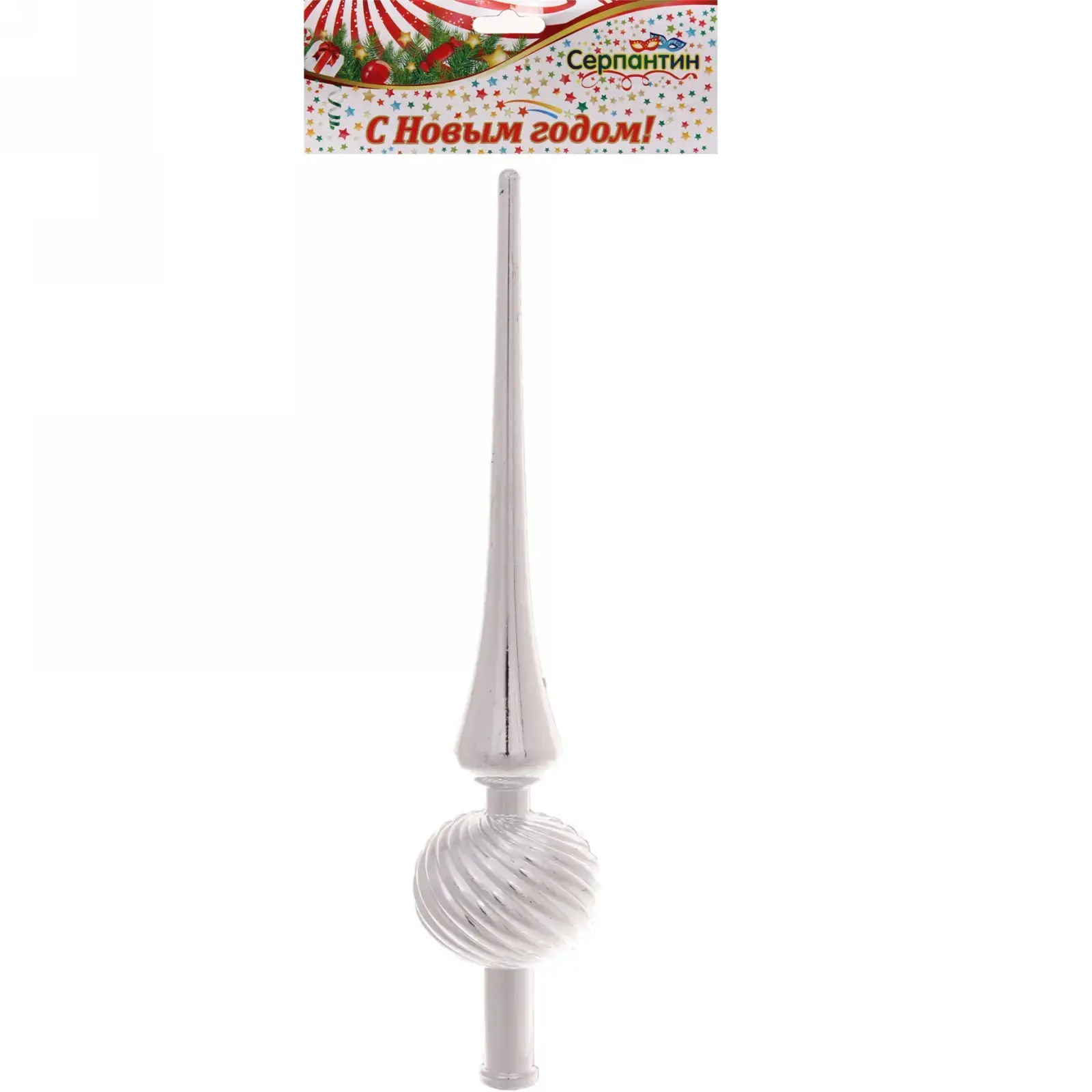 Размер верхушки составляет 25 см, что делает её заметной, но не слишком громоздкой. Она выполнена в форме конуса с округлой частью, украшенной спиралевидными узорами, что придаёт ей уникальный вид. Эта верхушка станет отличным завершением вашего новогоднего оформления и создаст атмосферу уюта и тепла в вашем доме.