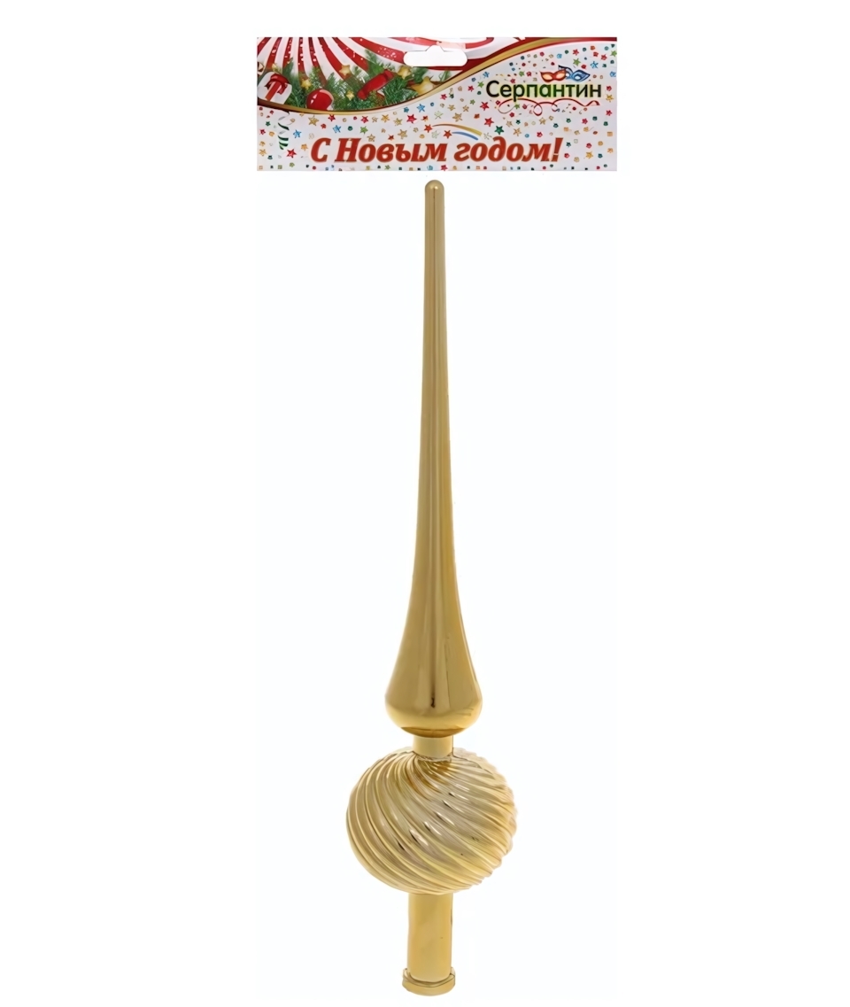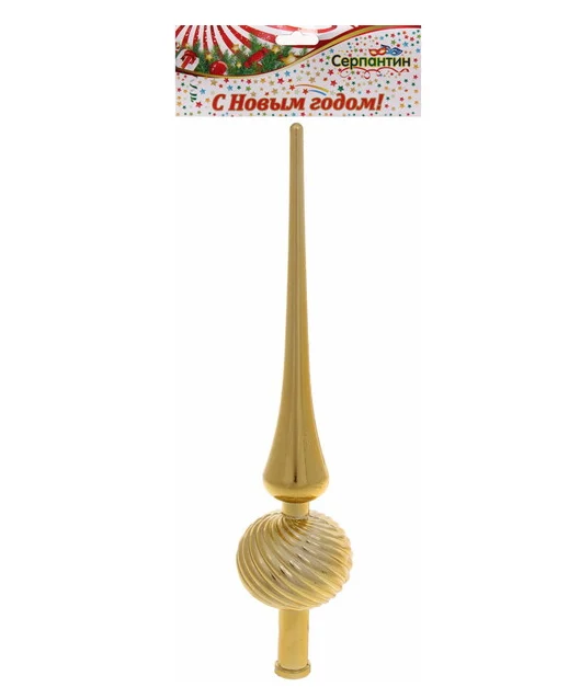Украсьте вершину ёлки изысканной верхушкой "Волна" в золотистом цвете. Её утончённая вытянутая форма с тонким кончиком и округлой основой, оформленной спиральными линиями, создаёт праздничный акцент, который притянет взгляды гостей. Этот аксессуар добавит вашему интерьеру атмосферу тепла и торжества, а золото выгодно подчеркнёт зелень хвои.