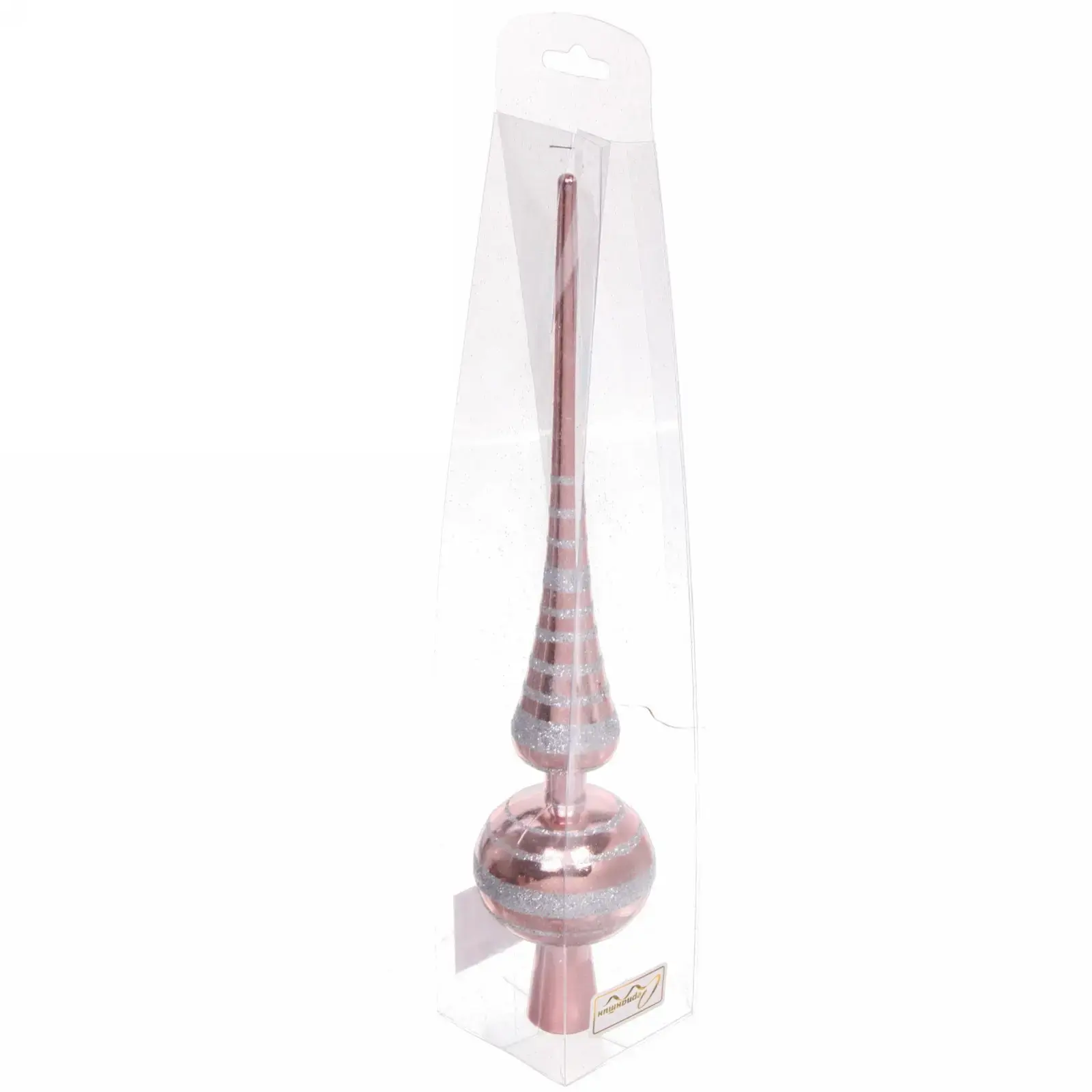 Высота верхушки составляет 27 см, что делает её заметной, но не слишком громоздкой. Материал — пластик, что обеспечивает лёгкость и долговечность. Розовое золото и серебро в сочетании с блестками создают эффектный визуальный акцент, который будет прекрасно смотреться на любой ёлке.