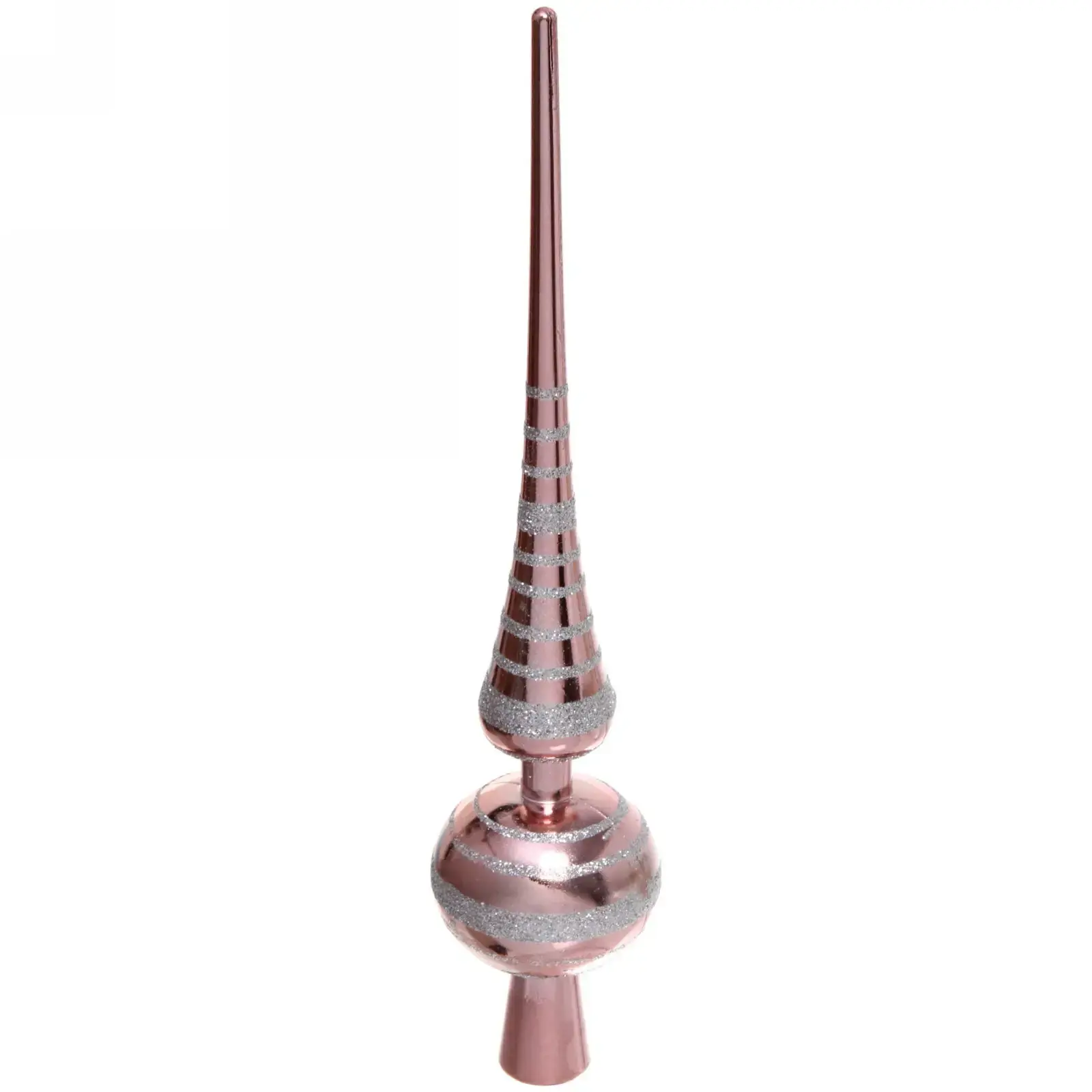 Создайте атмосферу волшебства и уюта в вашем доме с помощью верхушки на ёлку «Рождественская». Этот декоративный элемент высотой 27 см выполнен в нежных оттенках розового золота и серебра, что придаёт ему элегантный и праздничный вид. Блестящая поверхность, украшенная горизонтальными полосками и блестками, добавляет изысканности и делает вашу ёлку центром внимания на любом празднике.