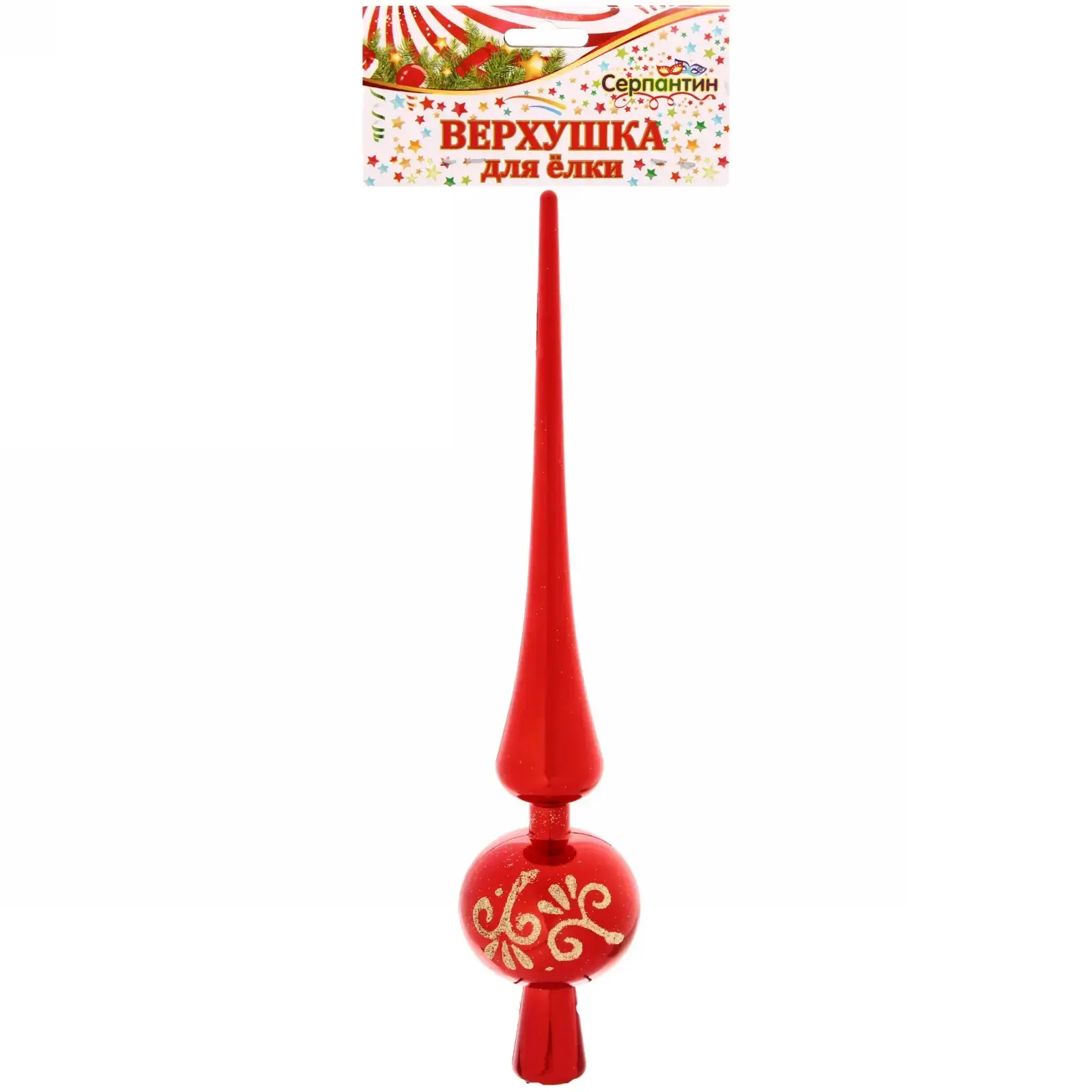 Верхушка на ёлку 'Золотой иней', красная, высота 27см, пластик