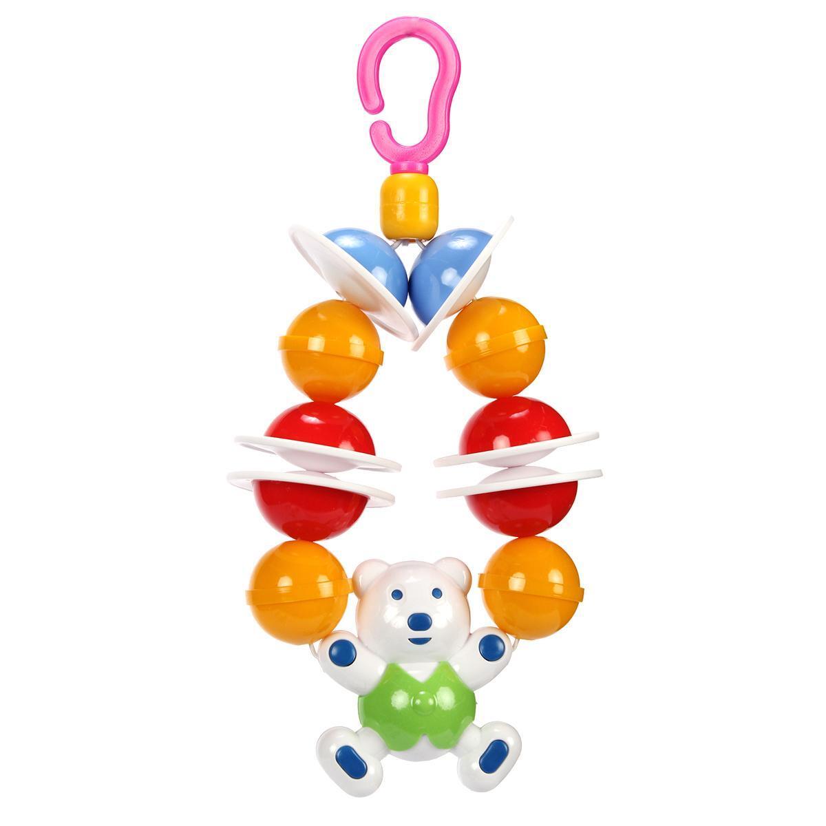 Подвеска детская 'Солнечный Мишка' белая с цветными шарами, пластик, для коляски и кроватки