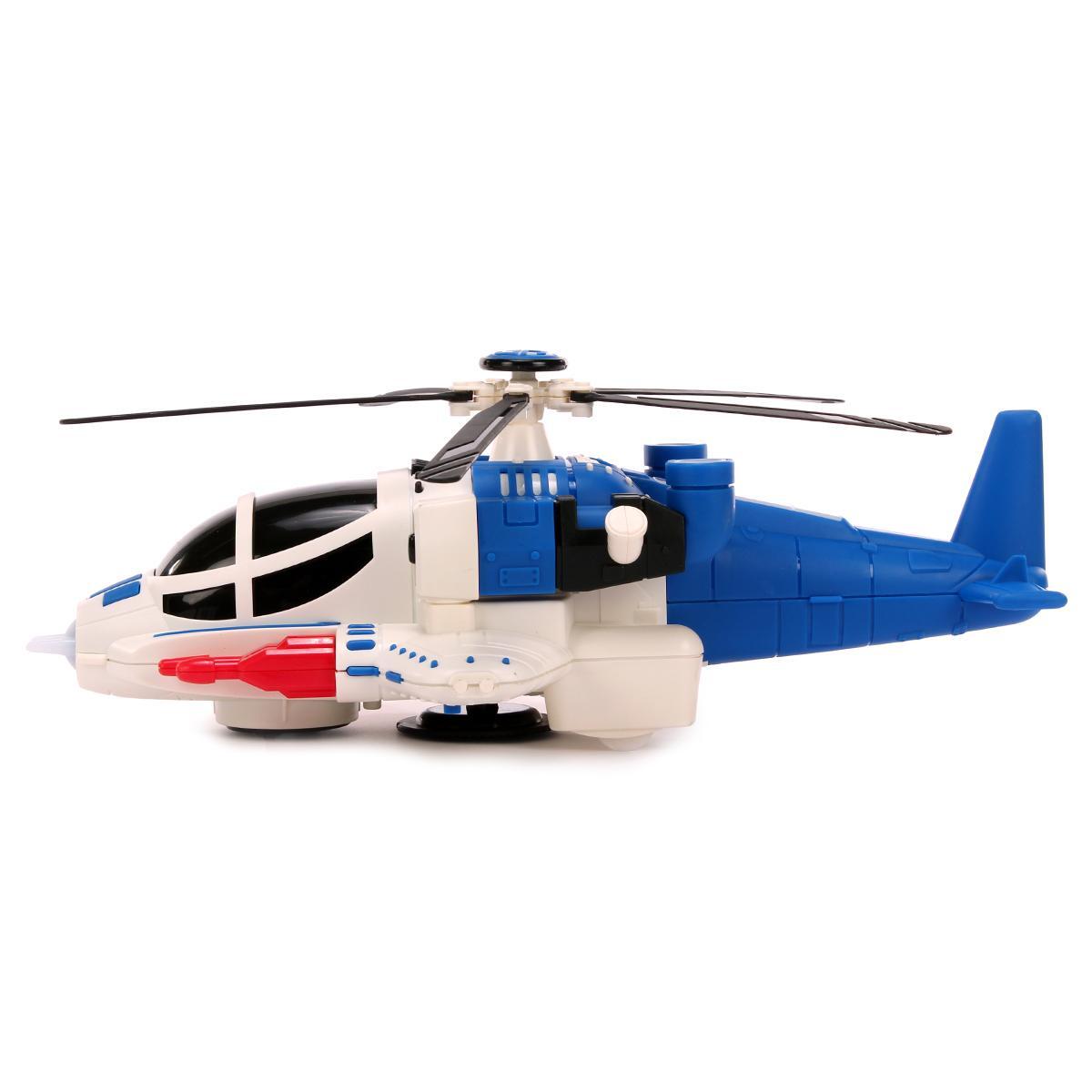 Вертолет на батарейках, свет/звук, пластик, 21х10х18см, бело-синий