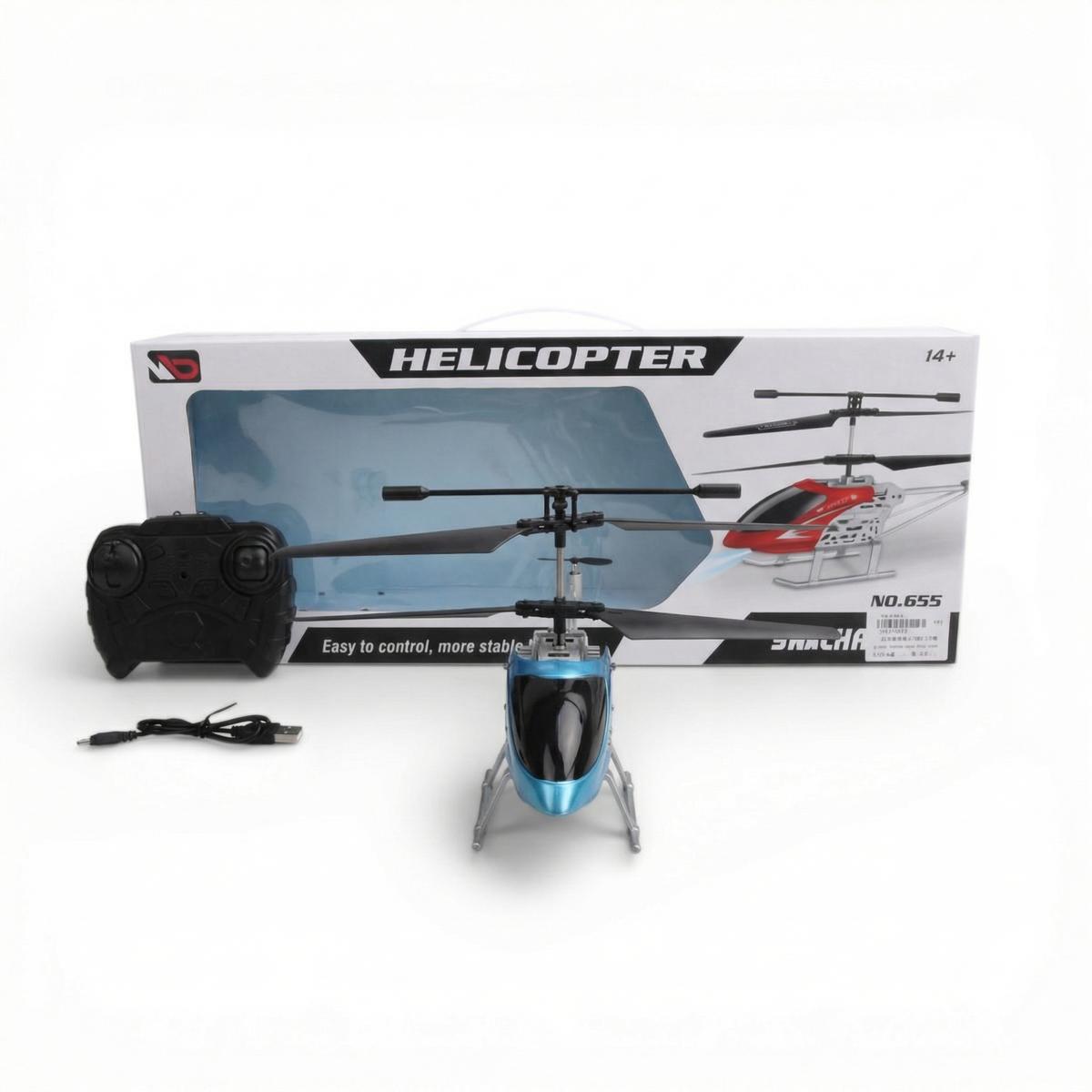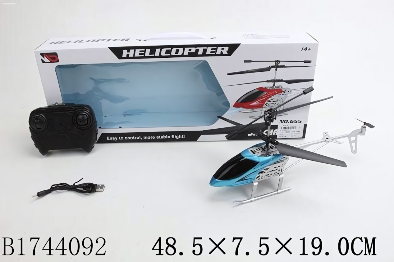 Вертолет на радиоуправлении "HELICOPTER NO.655", синий/черный, размер упаковки 48.5×7.5×19 см