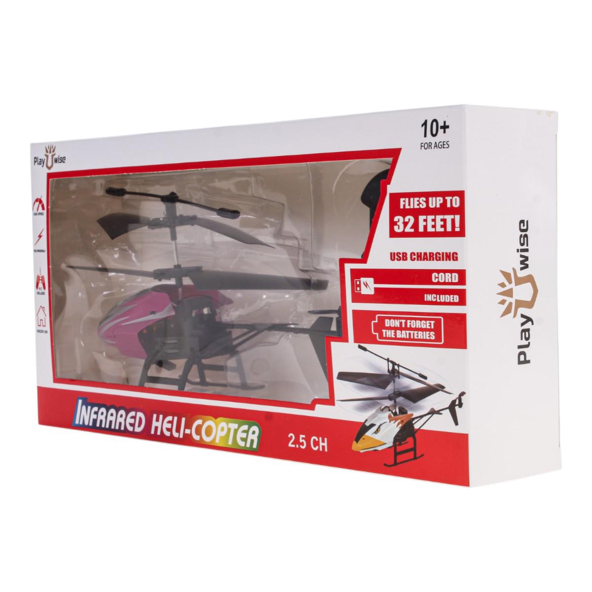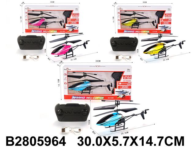 Цвет вертолета определяется случайным образом из доступных вариантов: розовый, голубой, желтый или черный. Для управления потребуются батарейки (не входят в комплект).